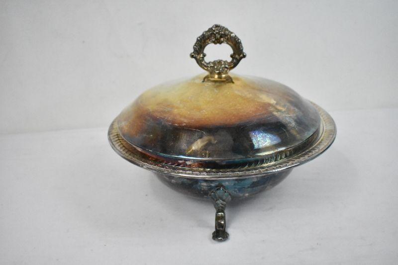 Vintage Silver Serving Dish W/ Lid - Tarnished (Silver Plated?)