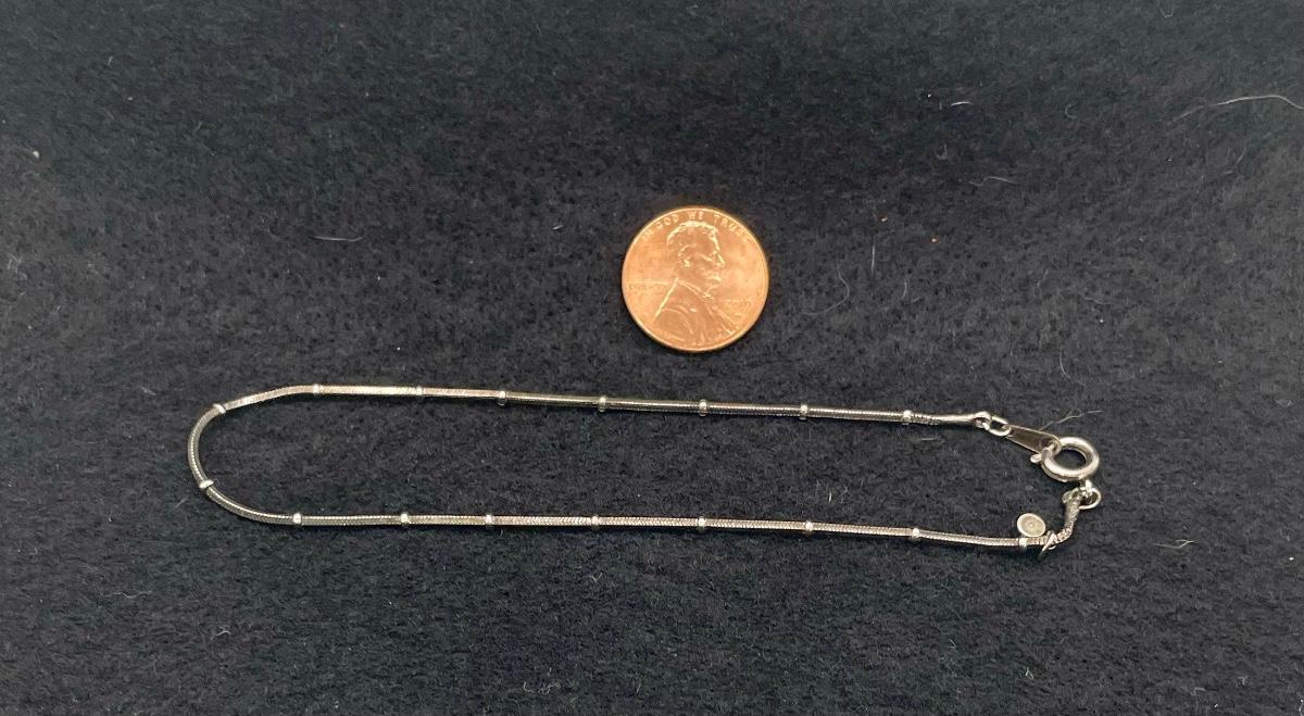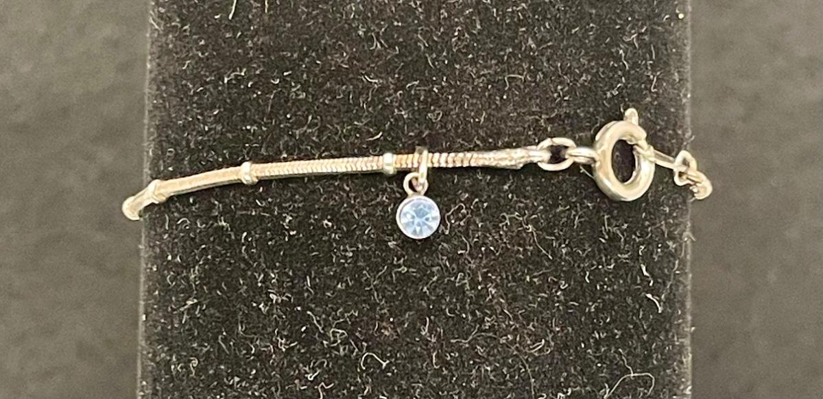 Vintage Silver tone Ankle Bracelet with Blue Stone Charm