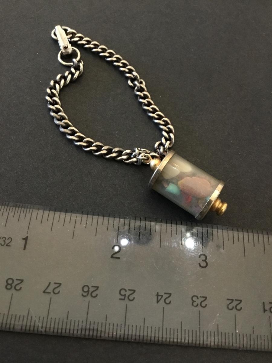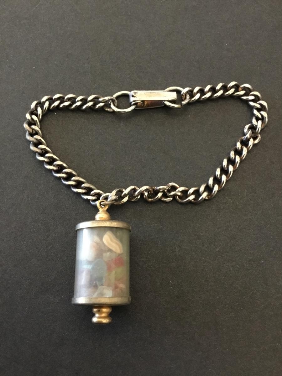 Vintage Silver tone chain bracelet with seashells cylinder charm