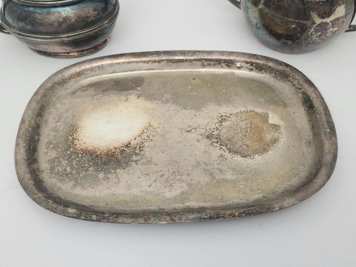 Vintage Silver Tone Creamer Sugar Bowl And Oval Serving Tray Three Piece Tabletop Set