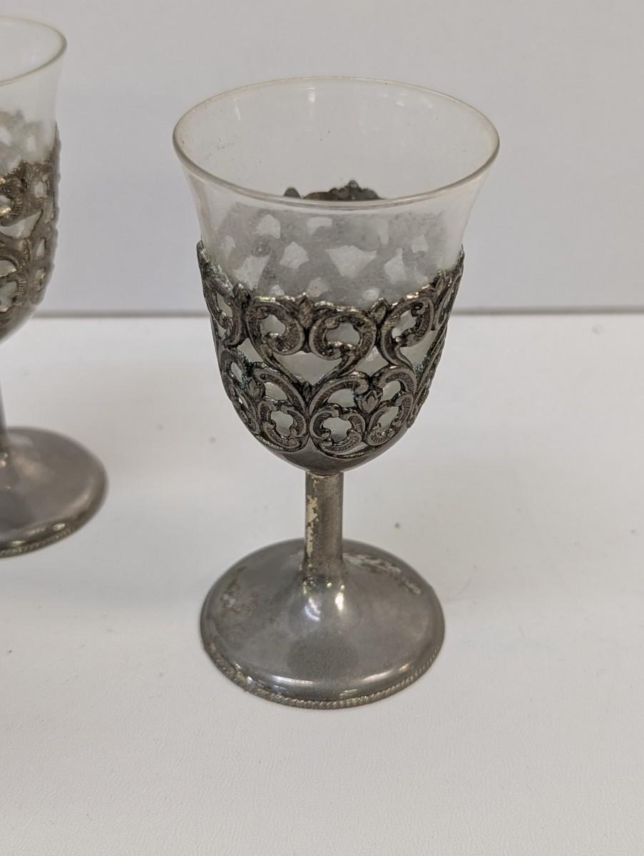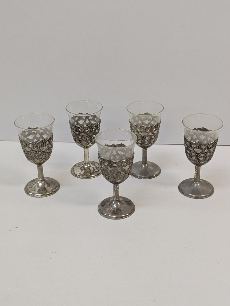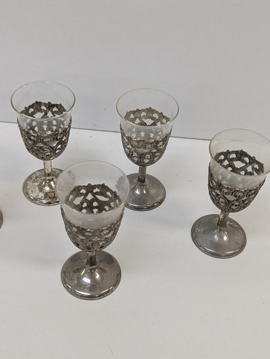 Vintage Silver Tone Filigree Cordial Liqueur Glassware