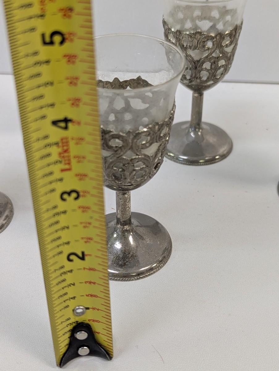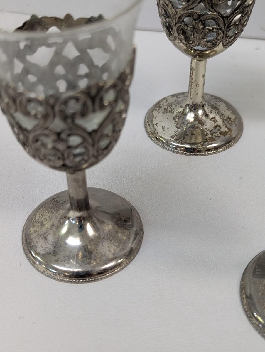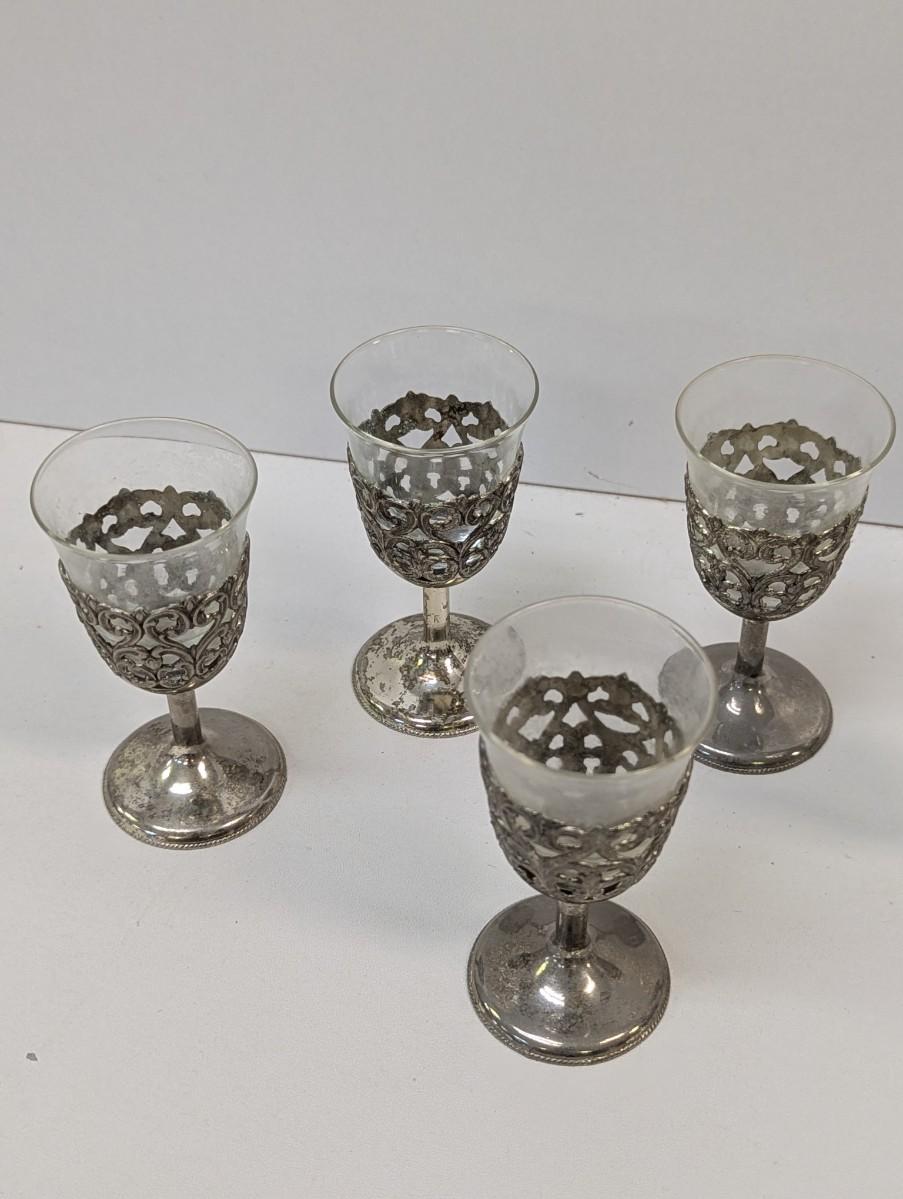 Vintage Silver Tone Filigree Cordial Liqueur Glassware