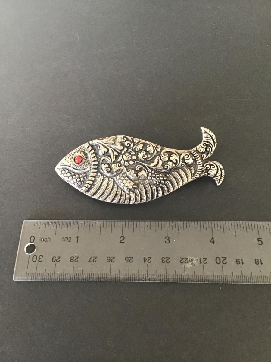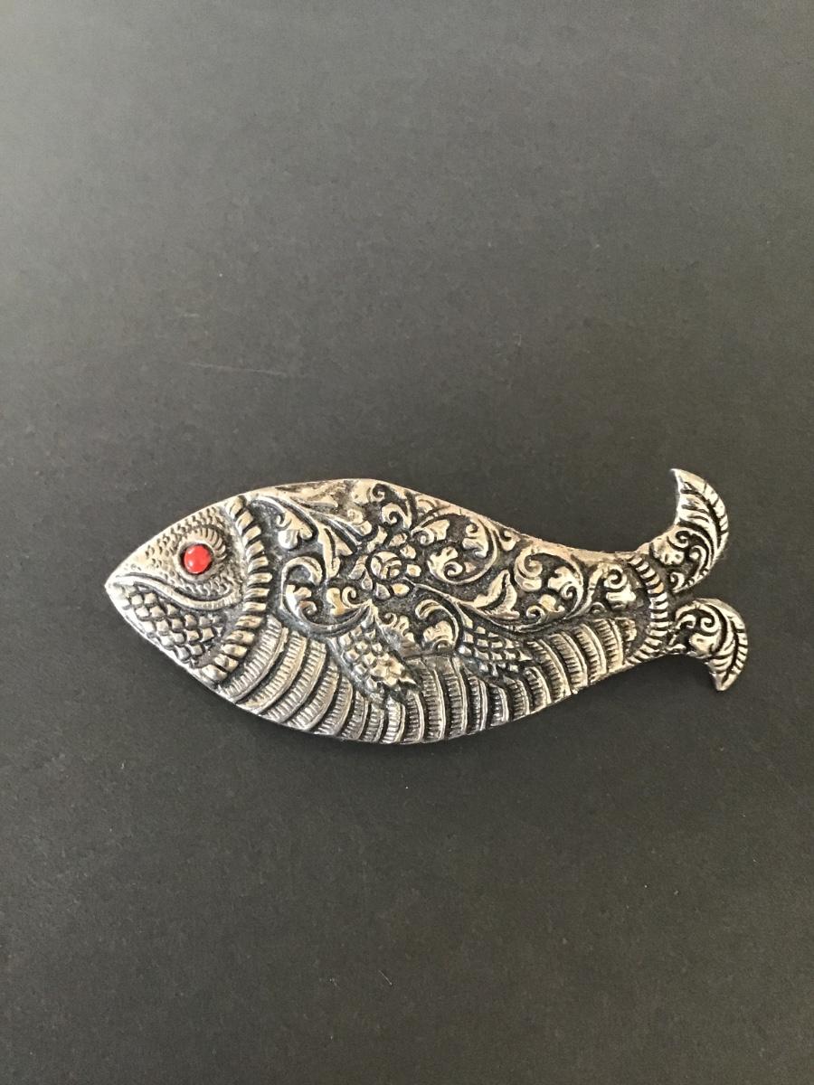 Vintage silver tone fish hair barrette with red eye Please see attached pictures