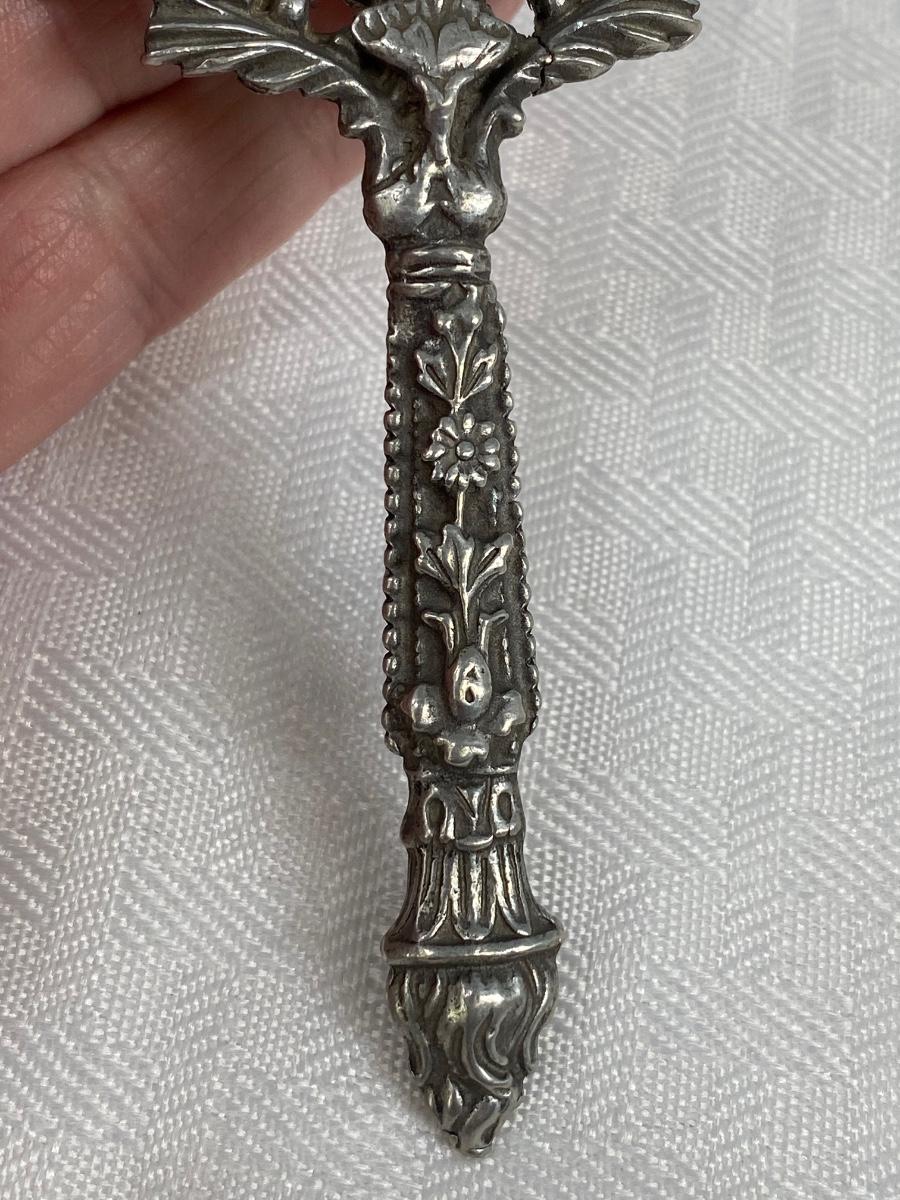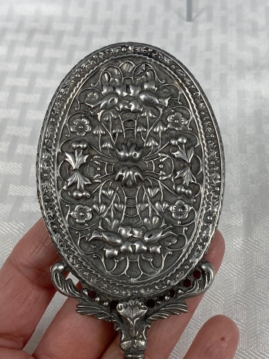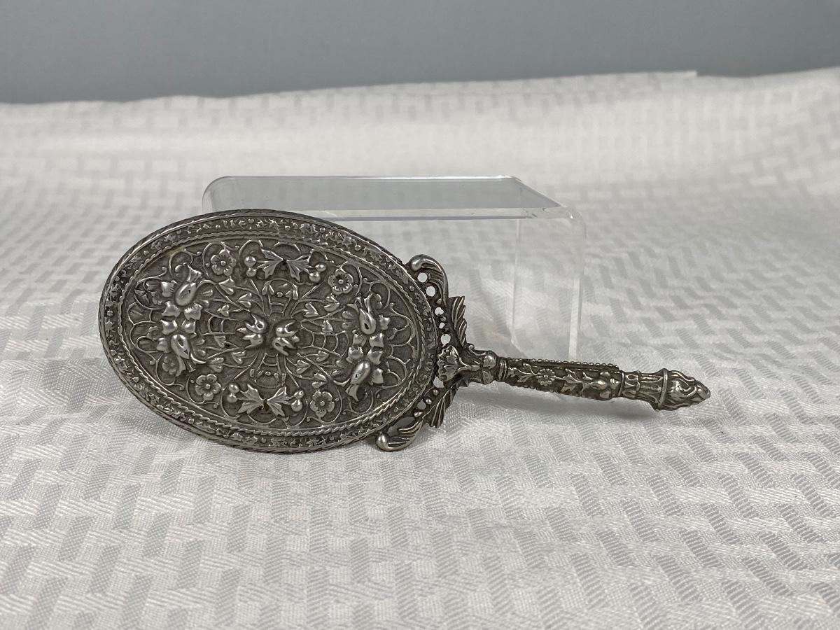 Vintage Silver Tone Floral Filigree Small Handheld Mirror