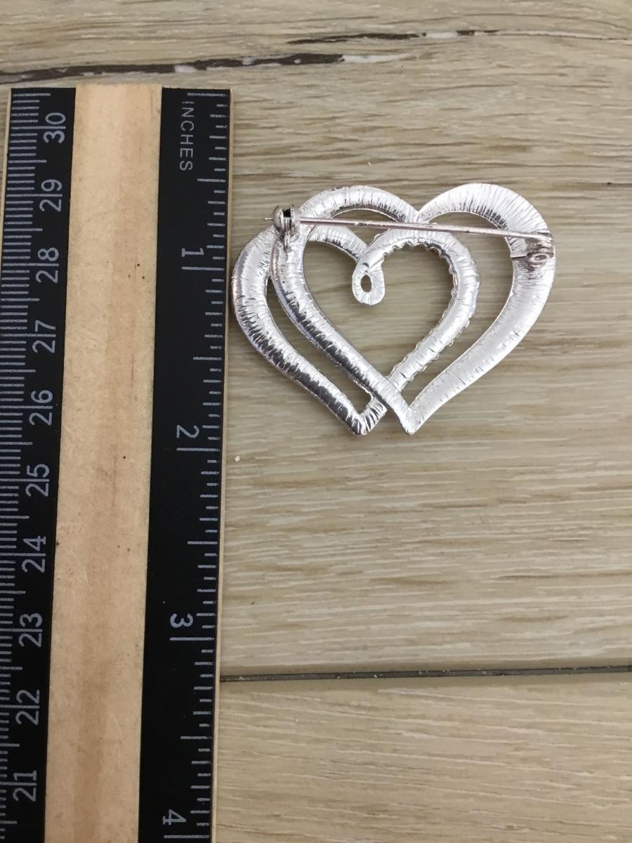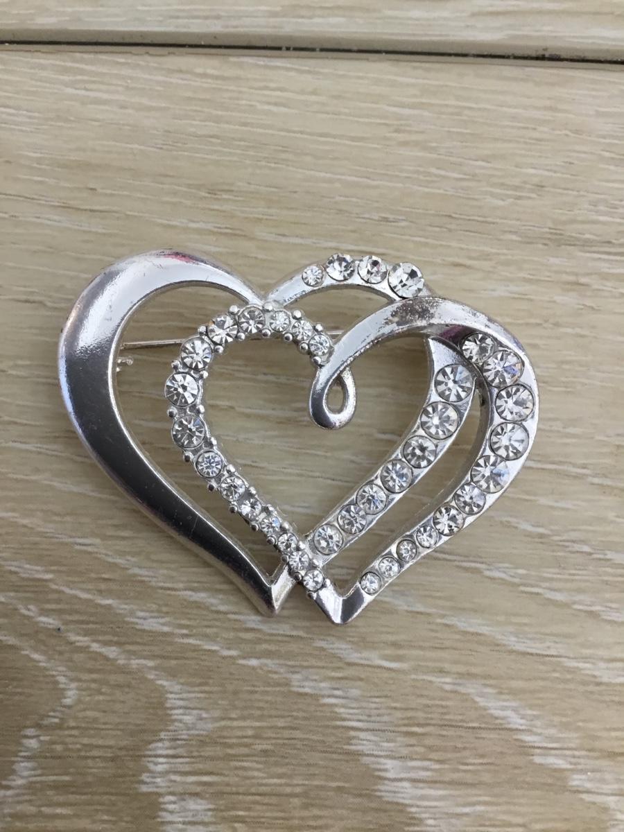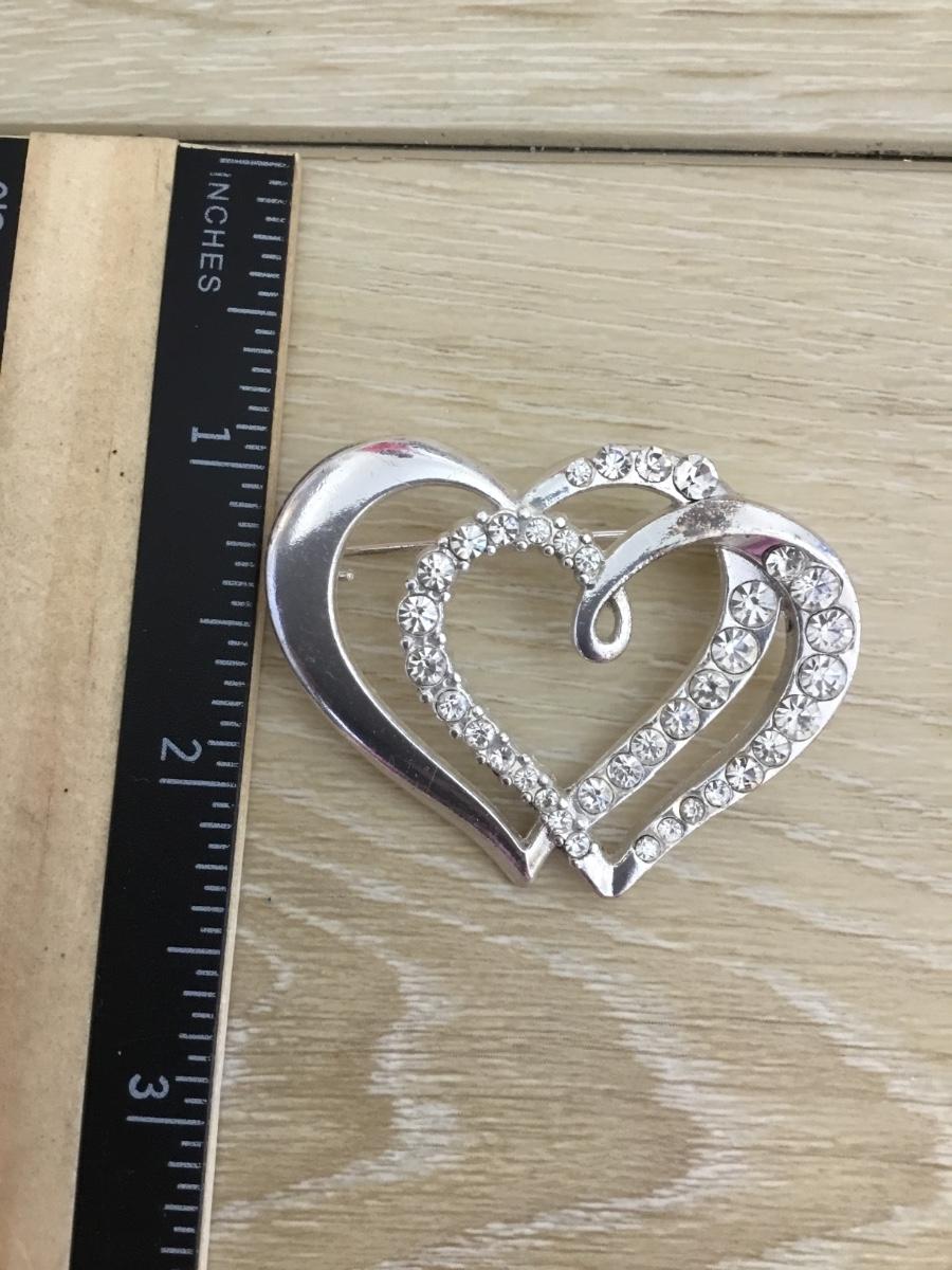 Vintage silver tone heart & clear rhinestone, brooch,