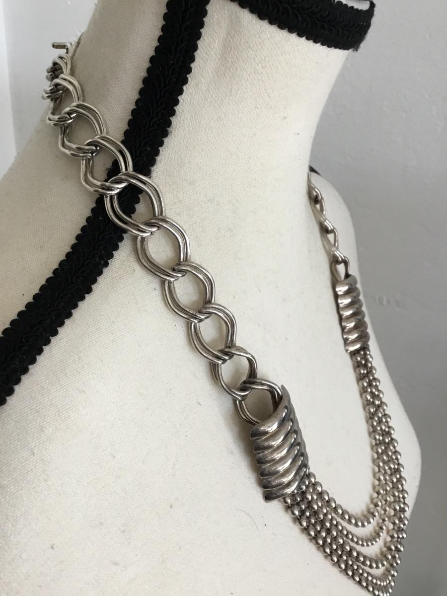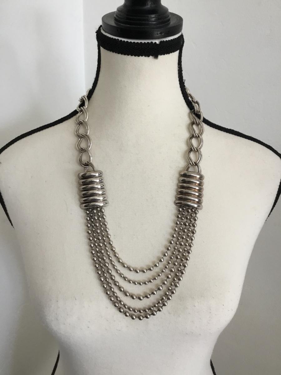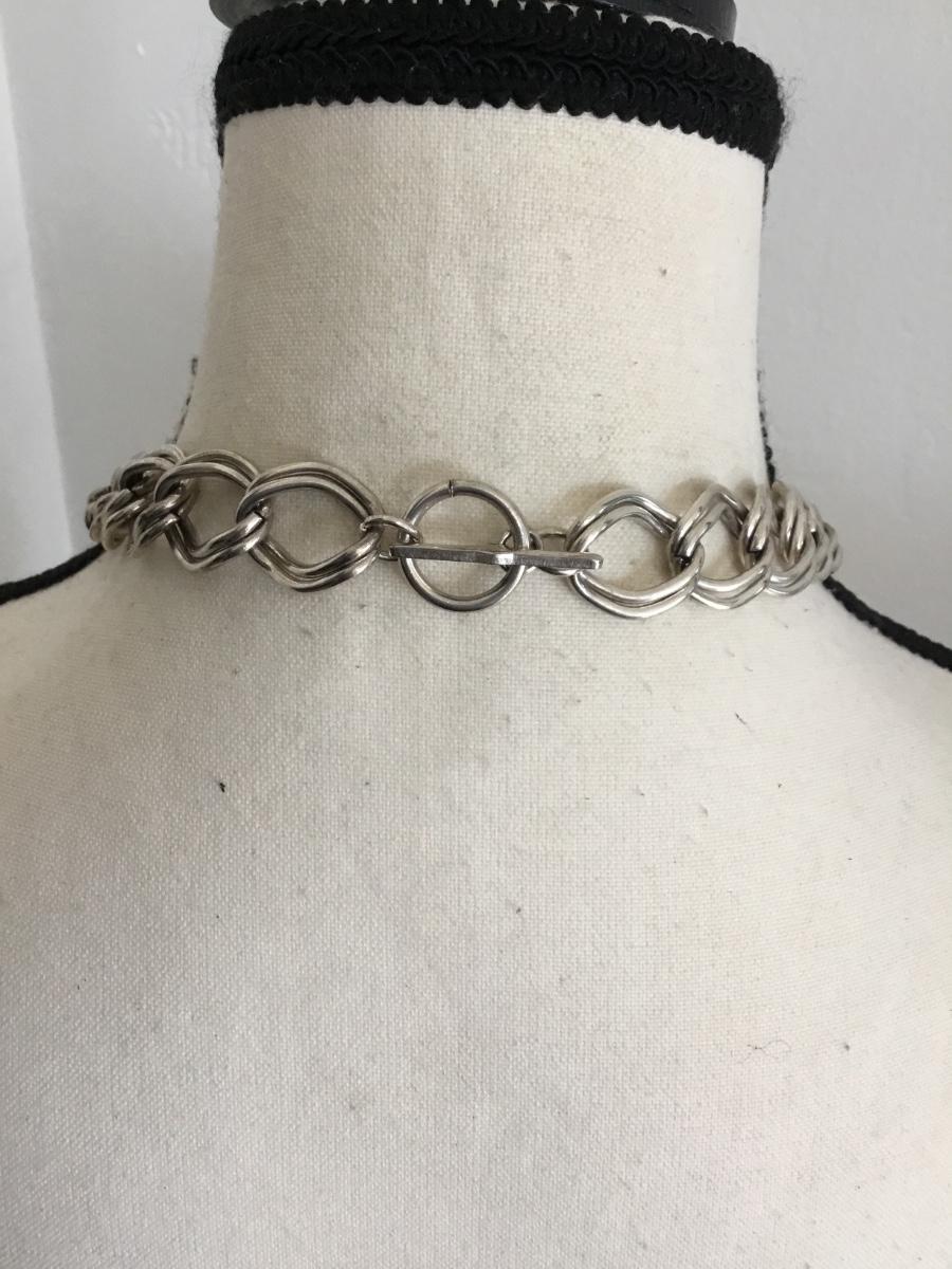 Vintage Silver tone, heavy metal chain statement, necklace with toggle clasp