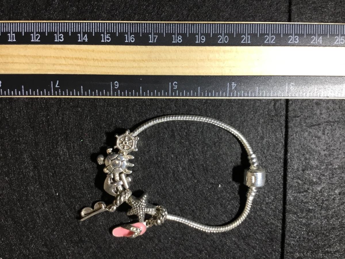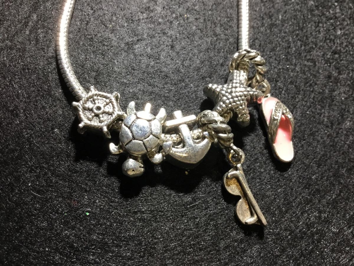 Vintage Silver tone nautical ship anchor sunglasses turtle flip flop charm bracelet