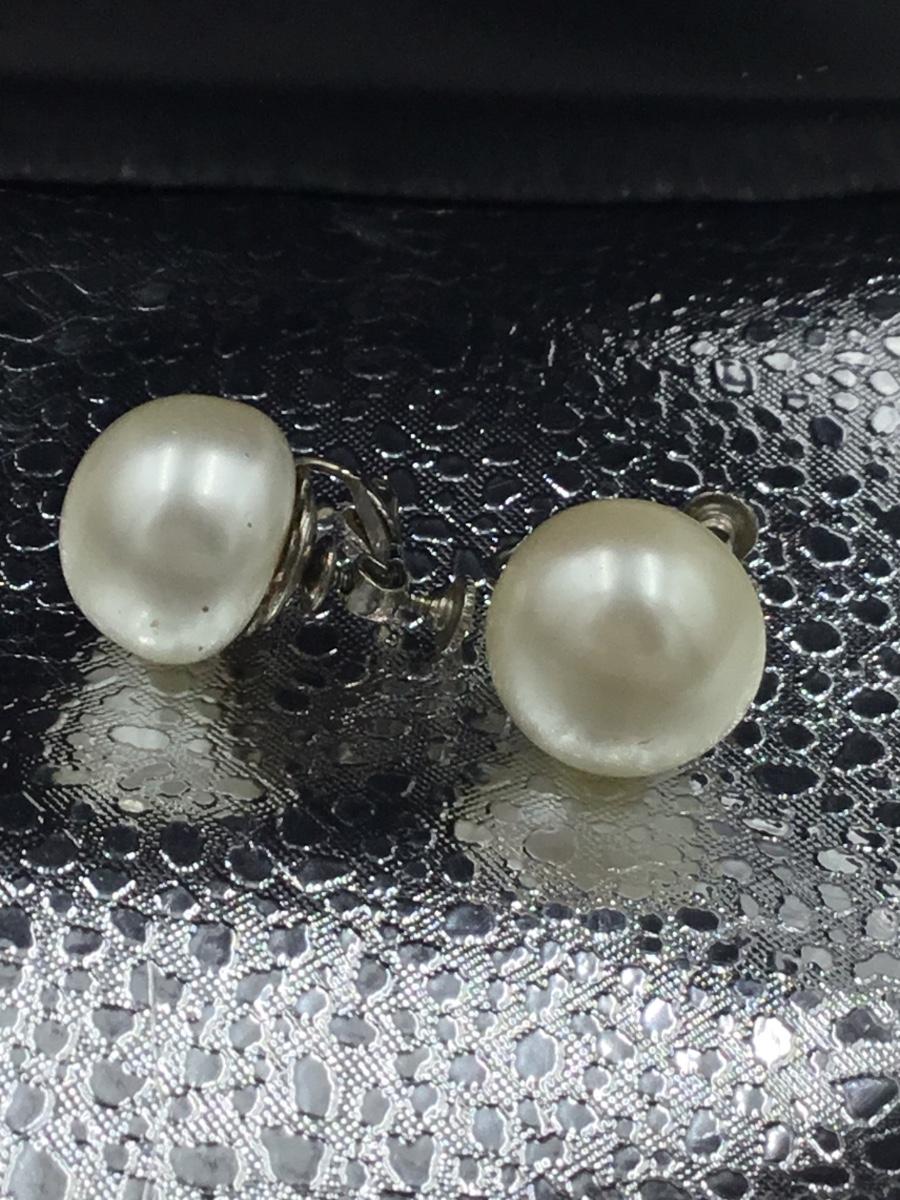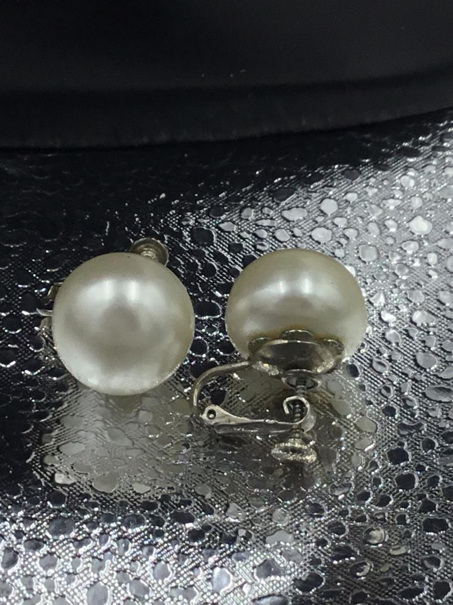 Vintage silver tone pearl tone statement earrings clip on