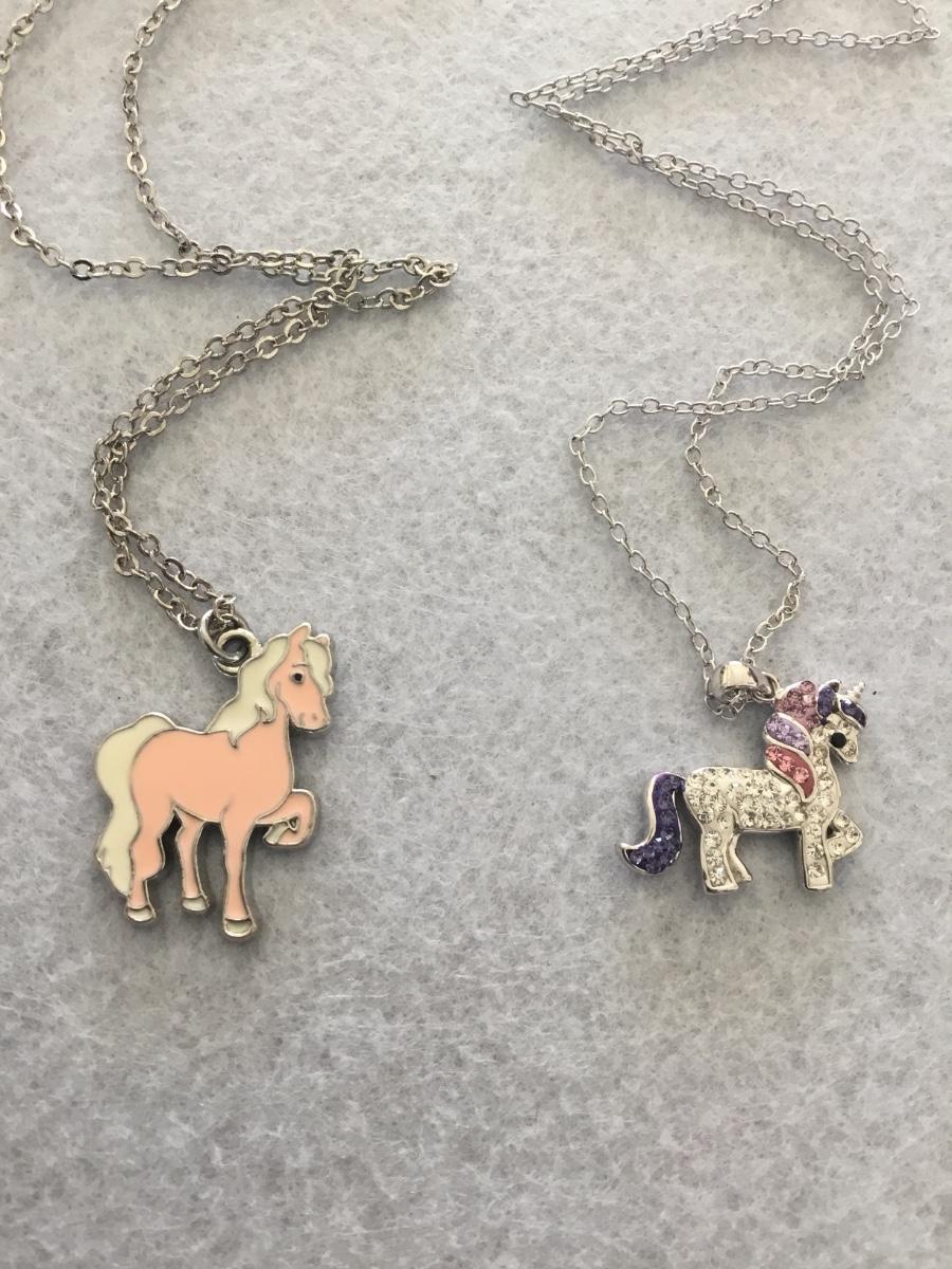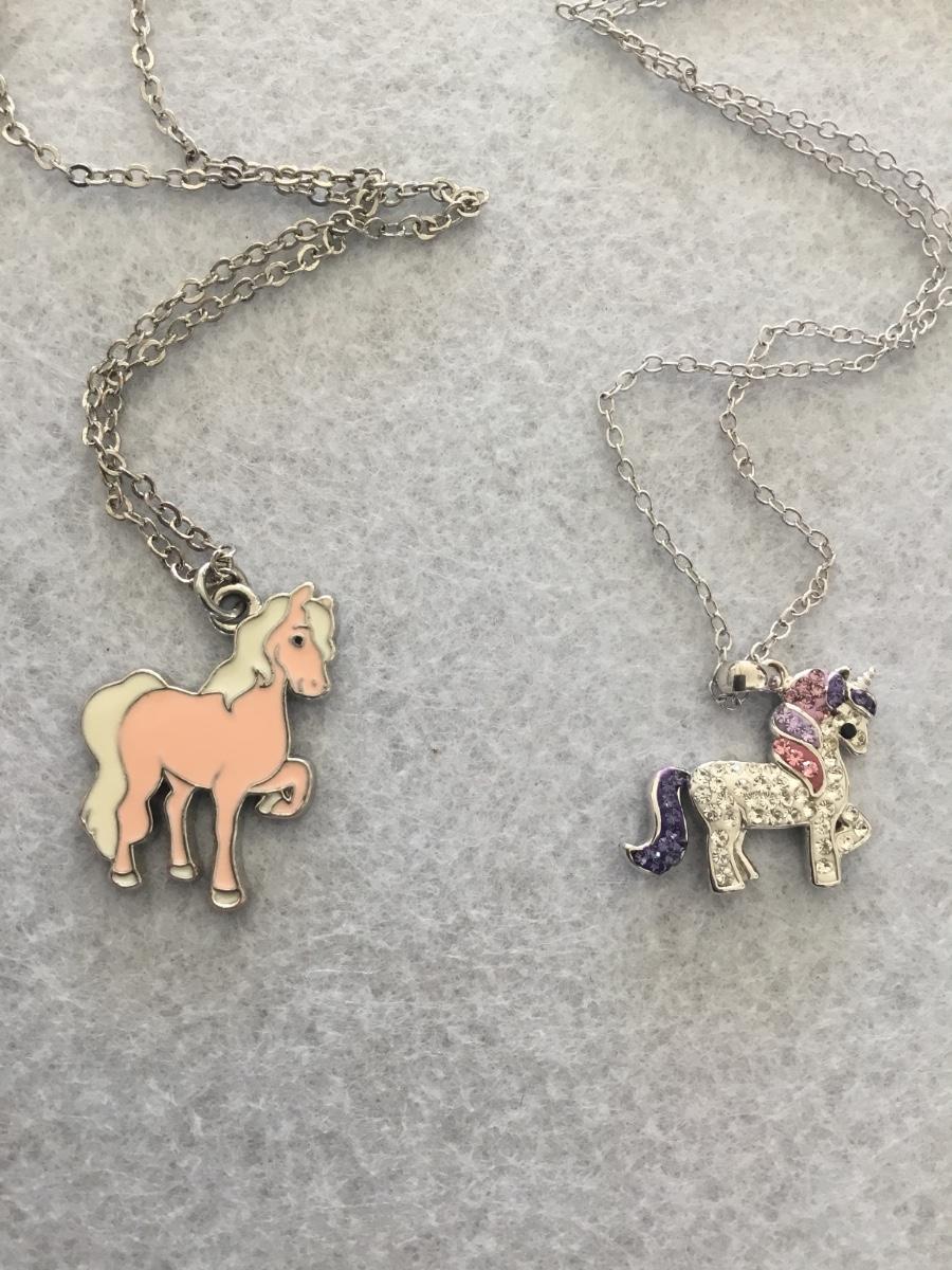 Vintage silver tone pony ,rhinestone and enamel necklaces