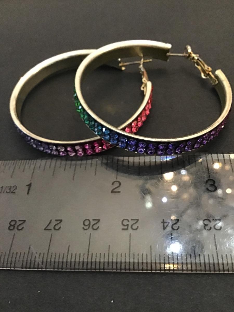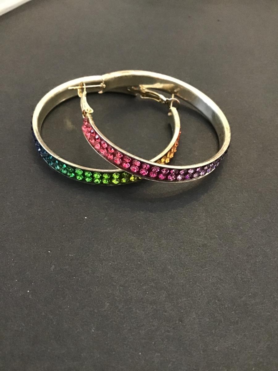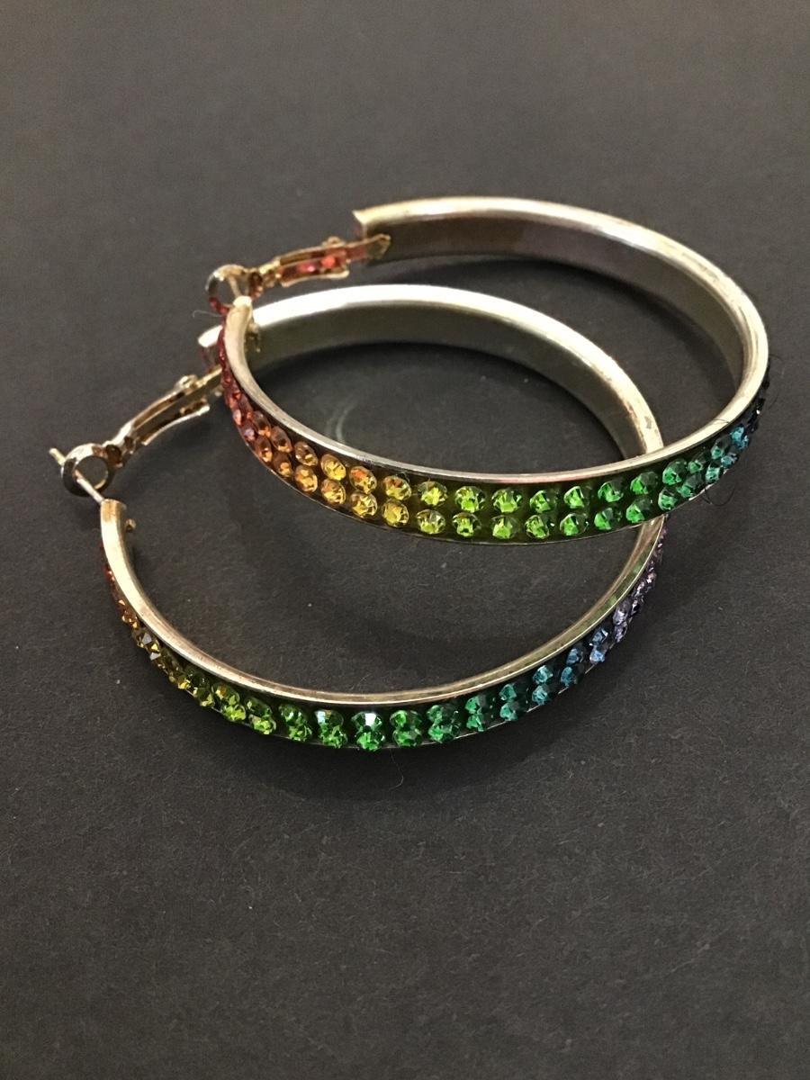 Vintage, silver, tone, rainbow hoop, earrings