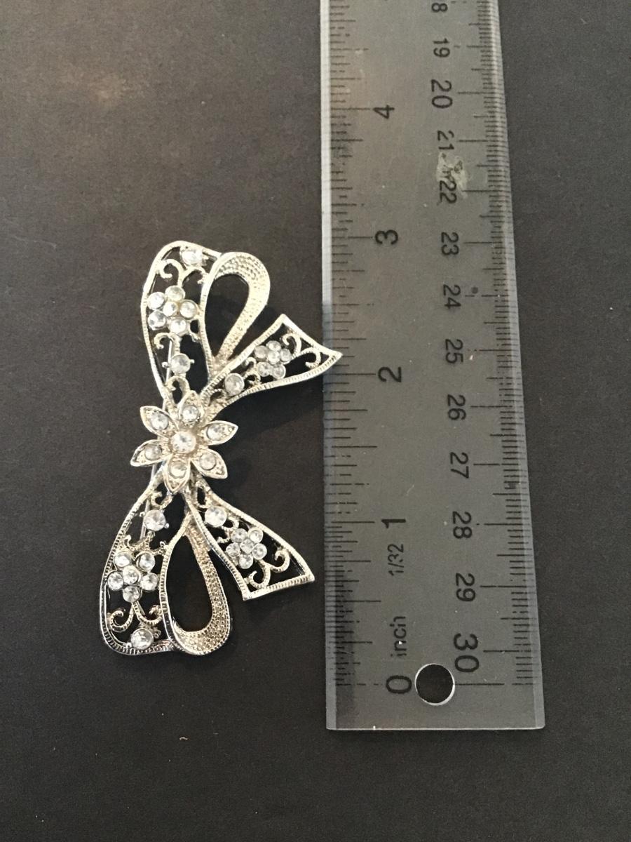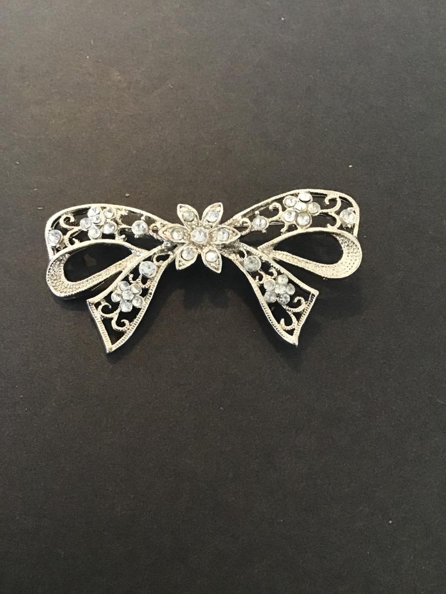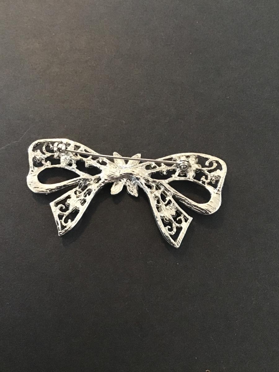 Vintage silver tone rhinestone bow brooch Please see attached pictures
