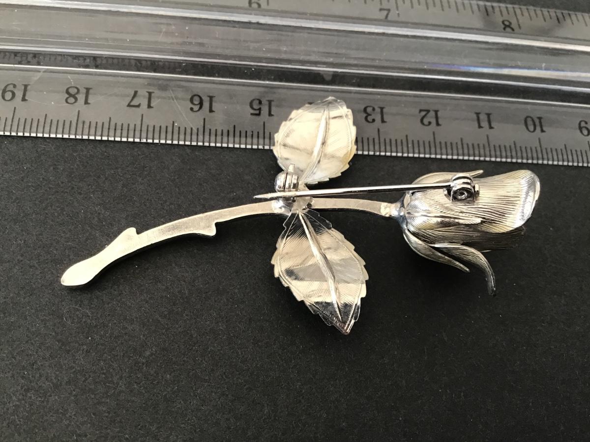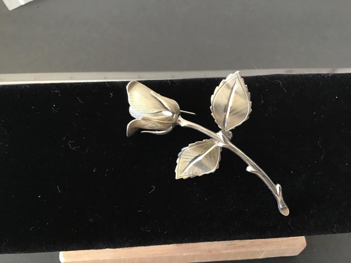 Vintage Silver Tone Rose Brooch