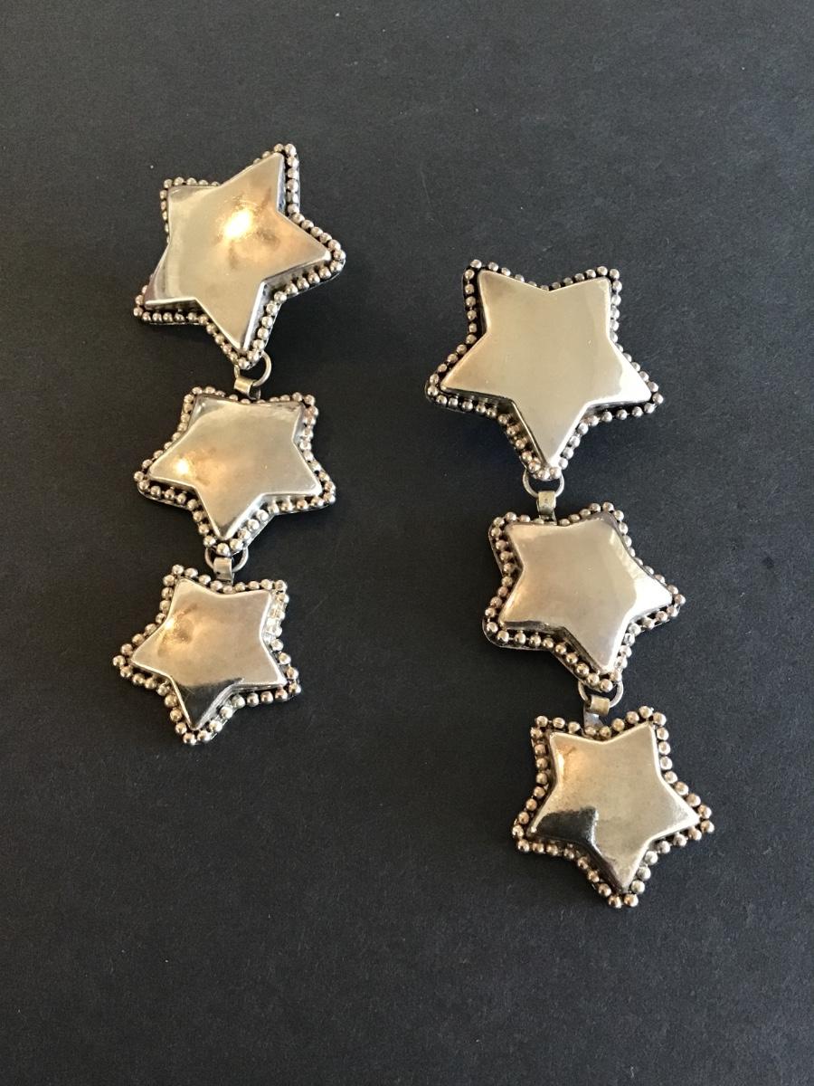 Vintage Silver Tone star charm earrings Please see attached photos