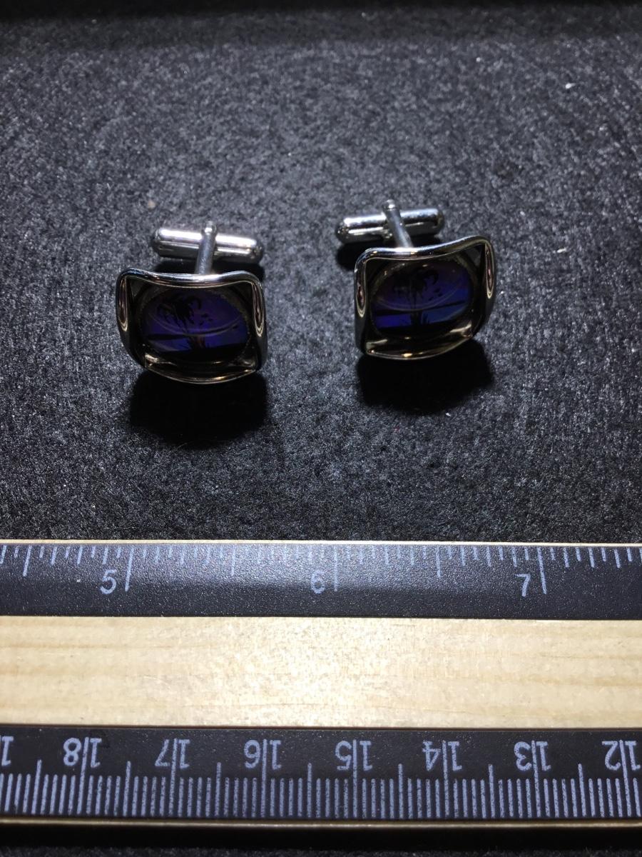 Vintage silver tone unmarked palm tree sunset cuff links