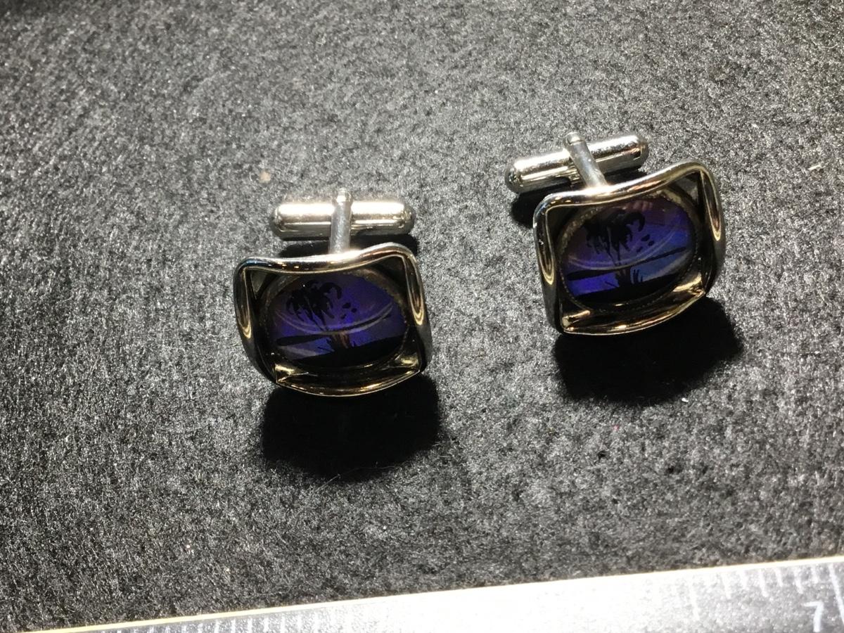 Vintage silver tone unmarked palm tree sunset cuff links