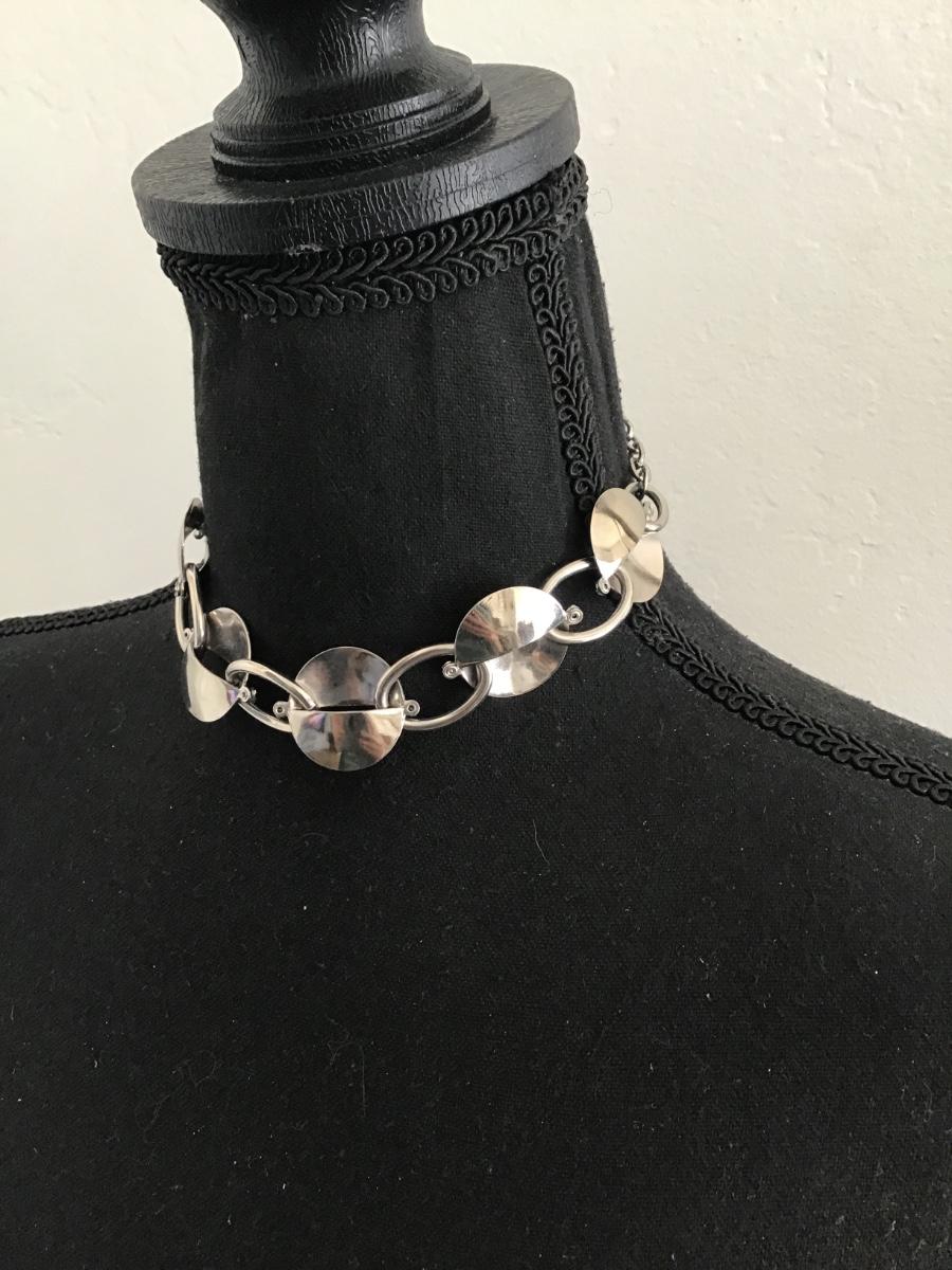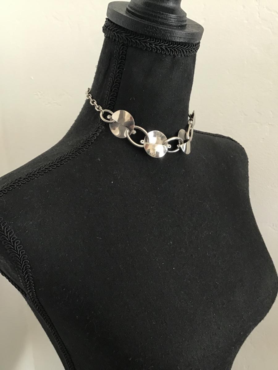 Vintage, silver, toned, circular disk choker necklace