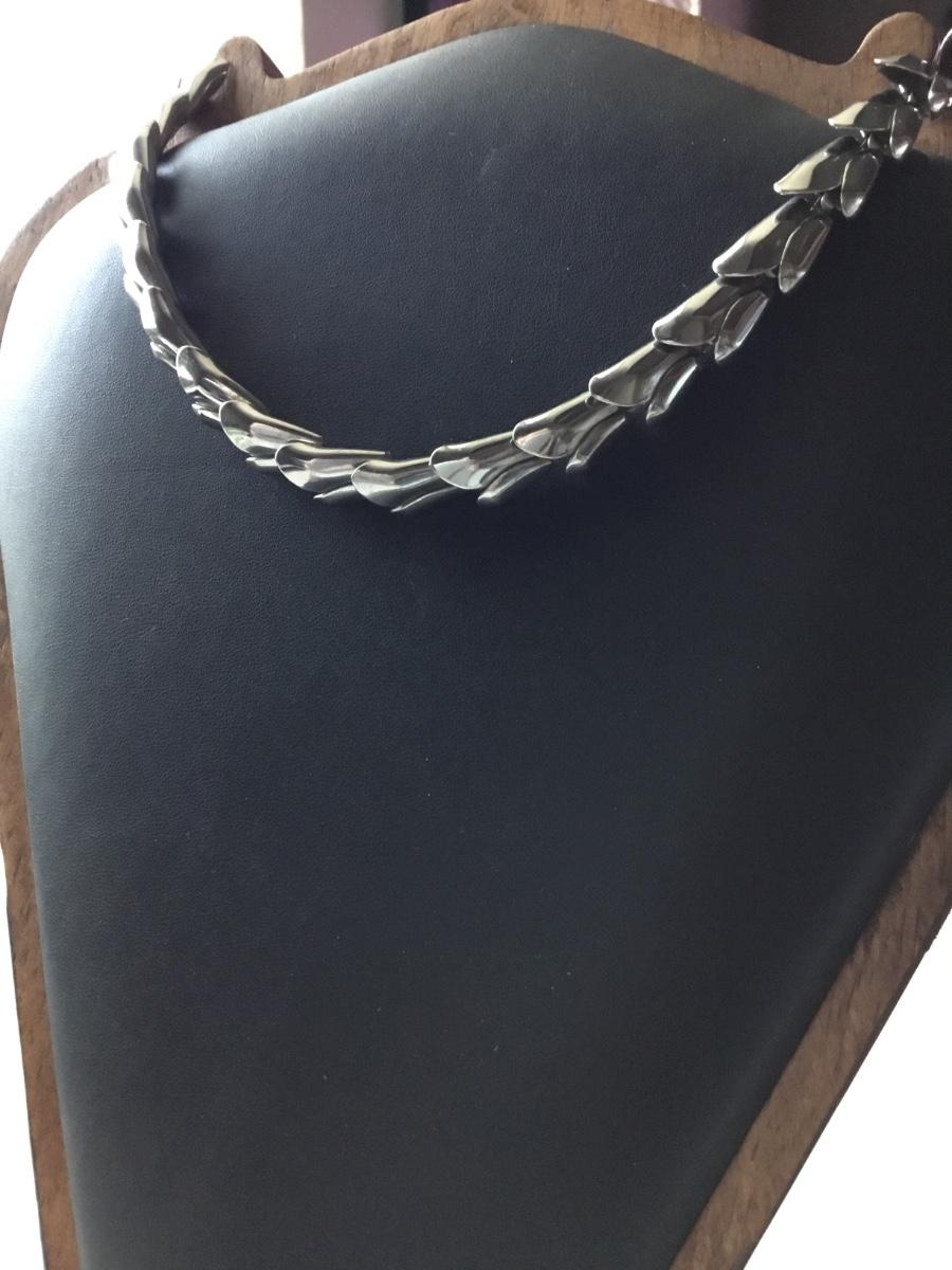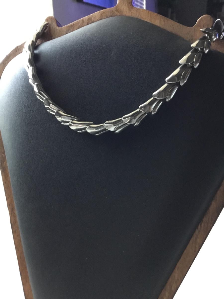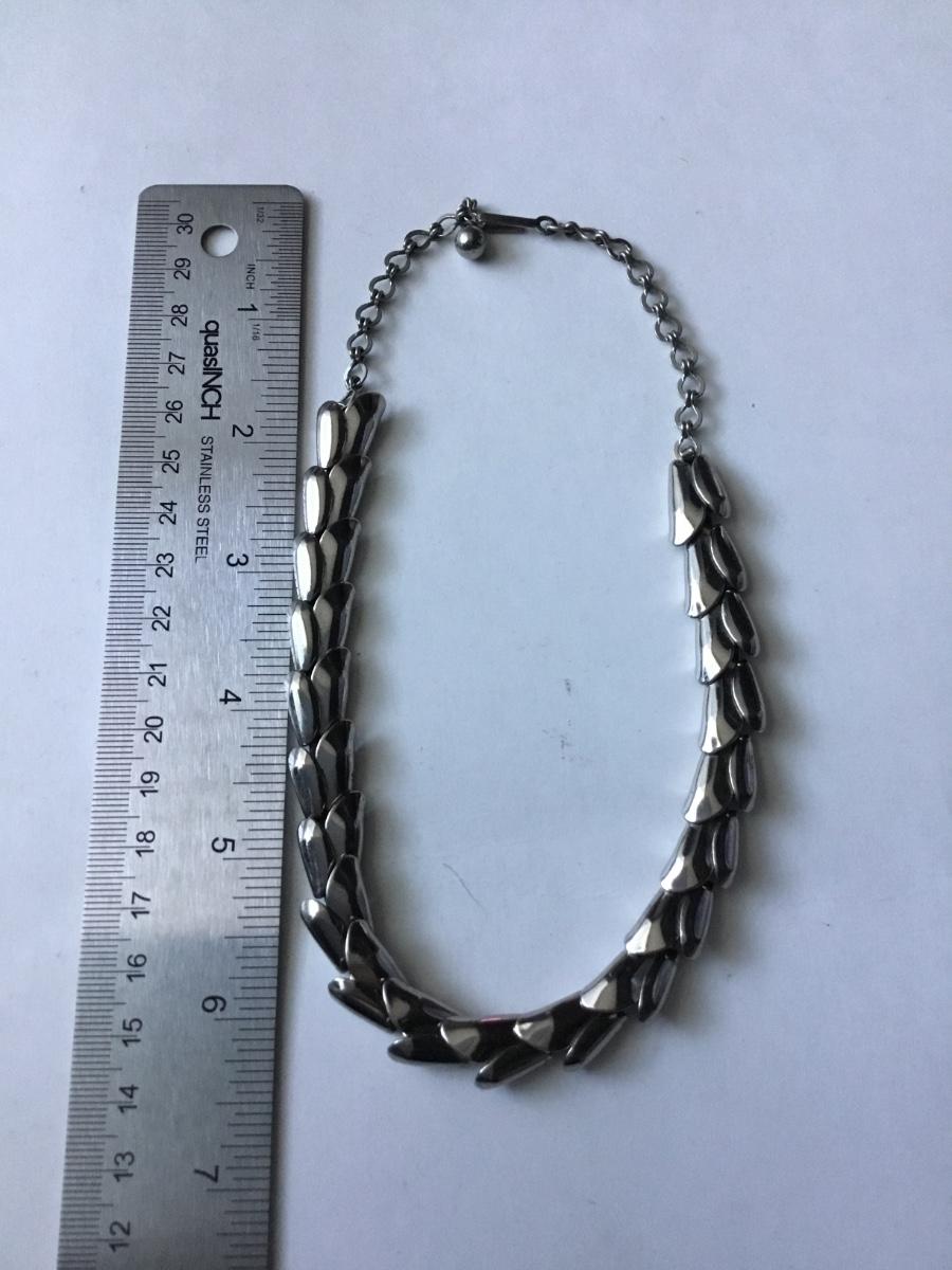 Vintage silver toned metal scale style link necklace