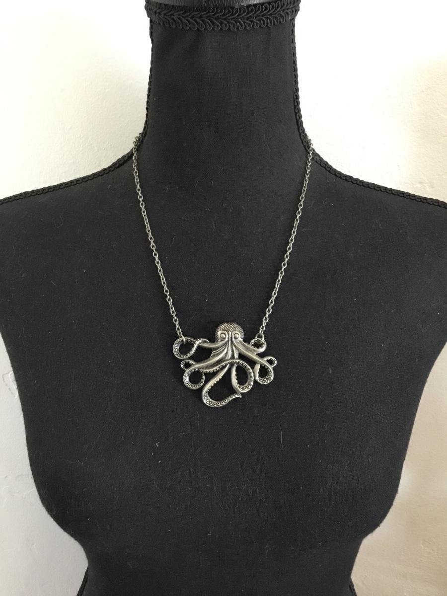 Vintage, silver, toned, octopus pendant statement, necklace