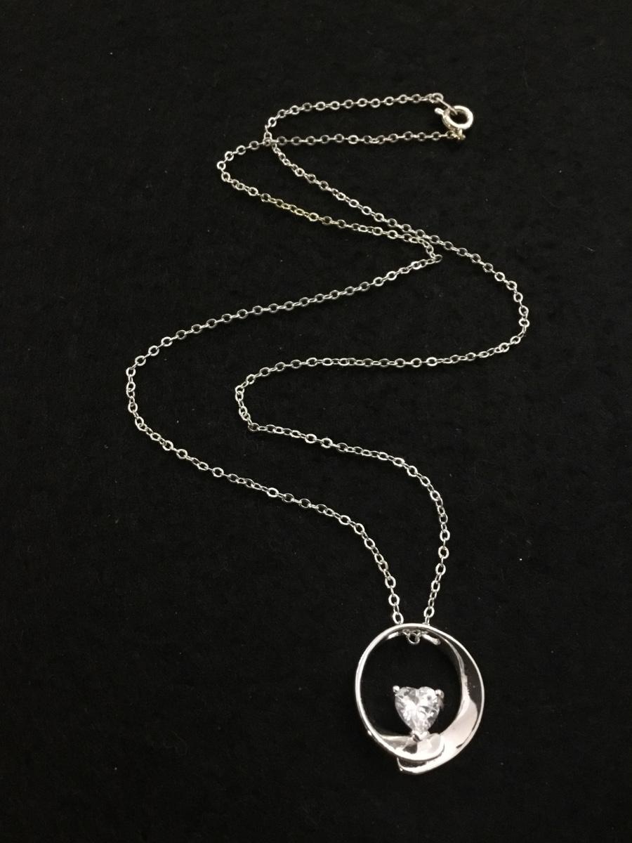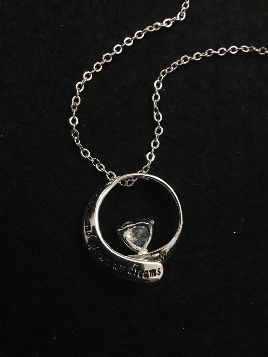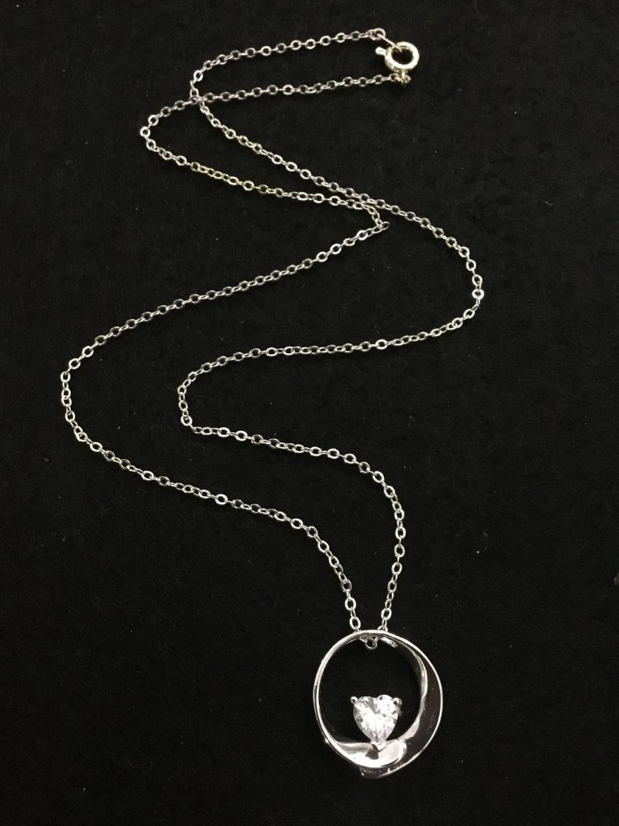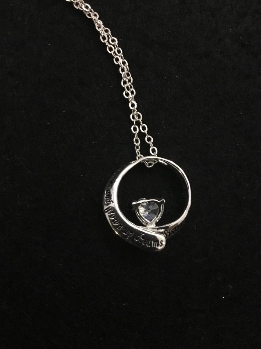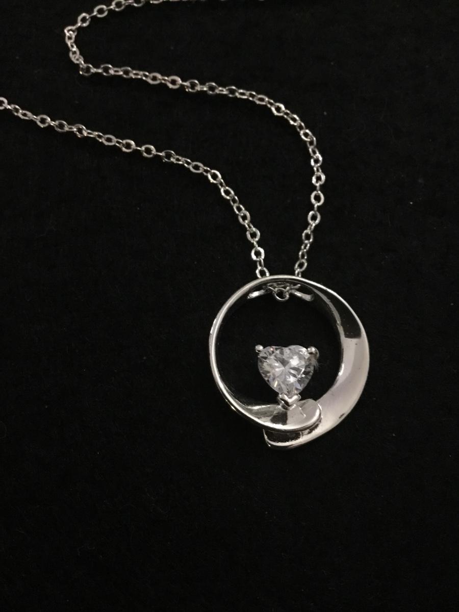 Vintage silver toned, sisters necklace Crystal heart pendant