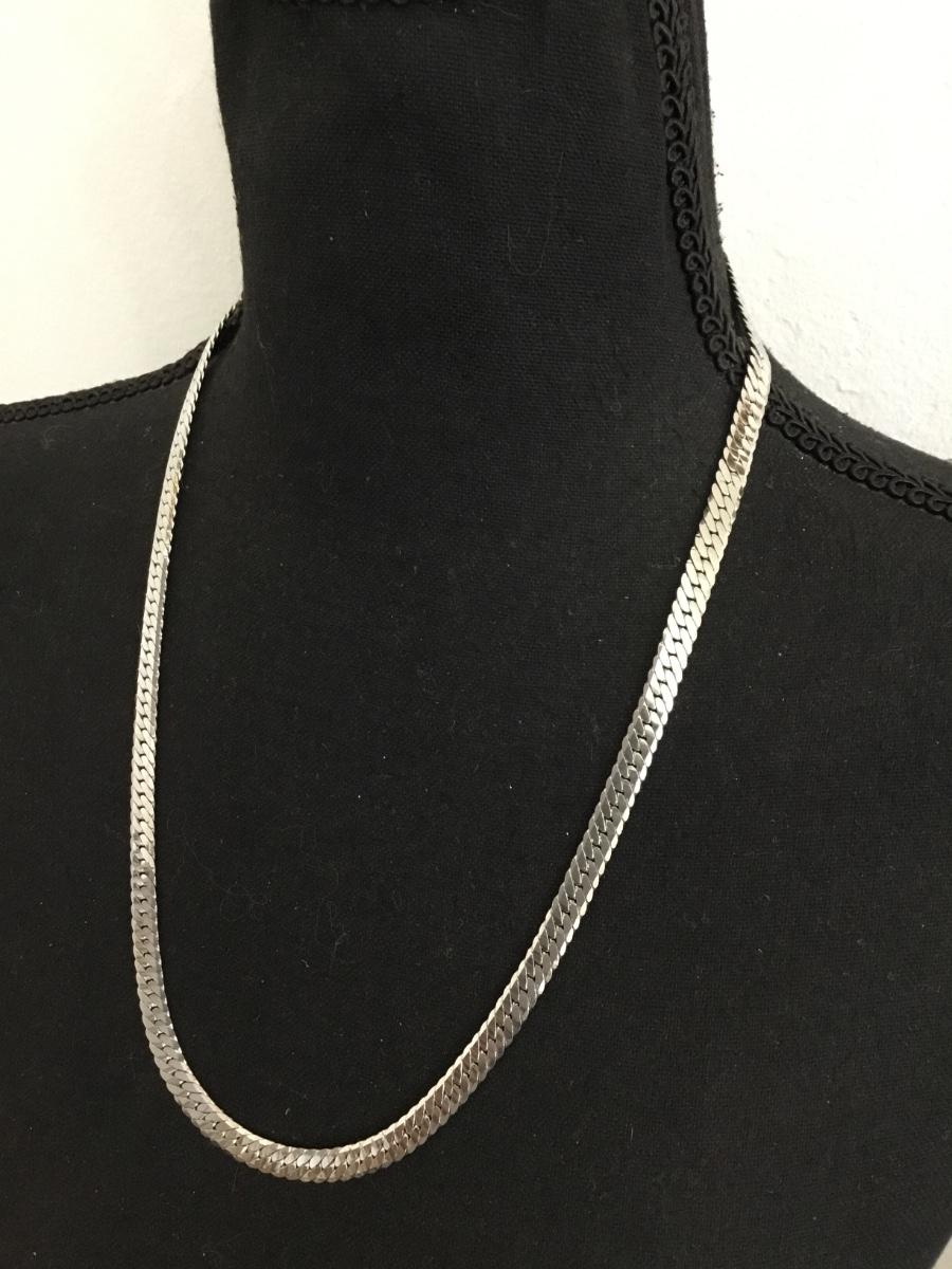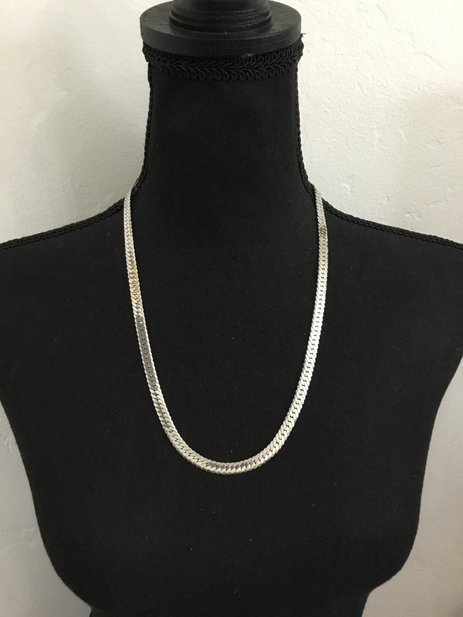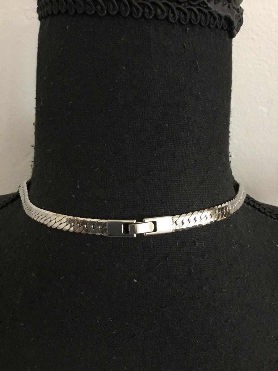 Vintage, silver, toned, stainless steel, flat, wide chain necklace