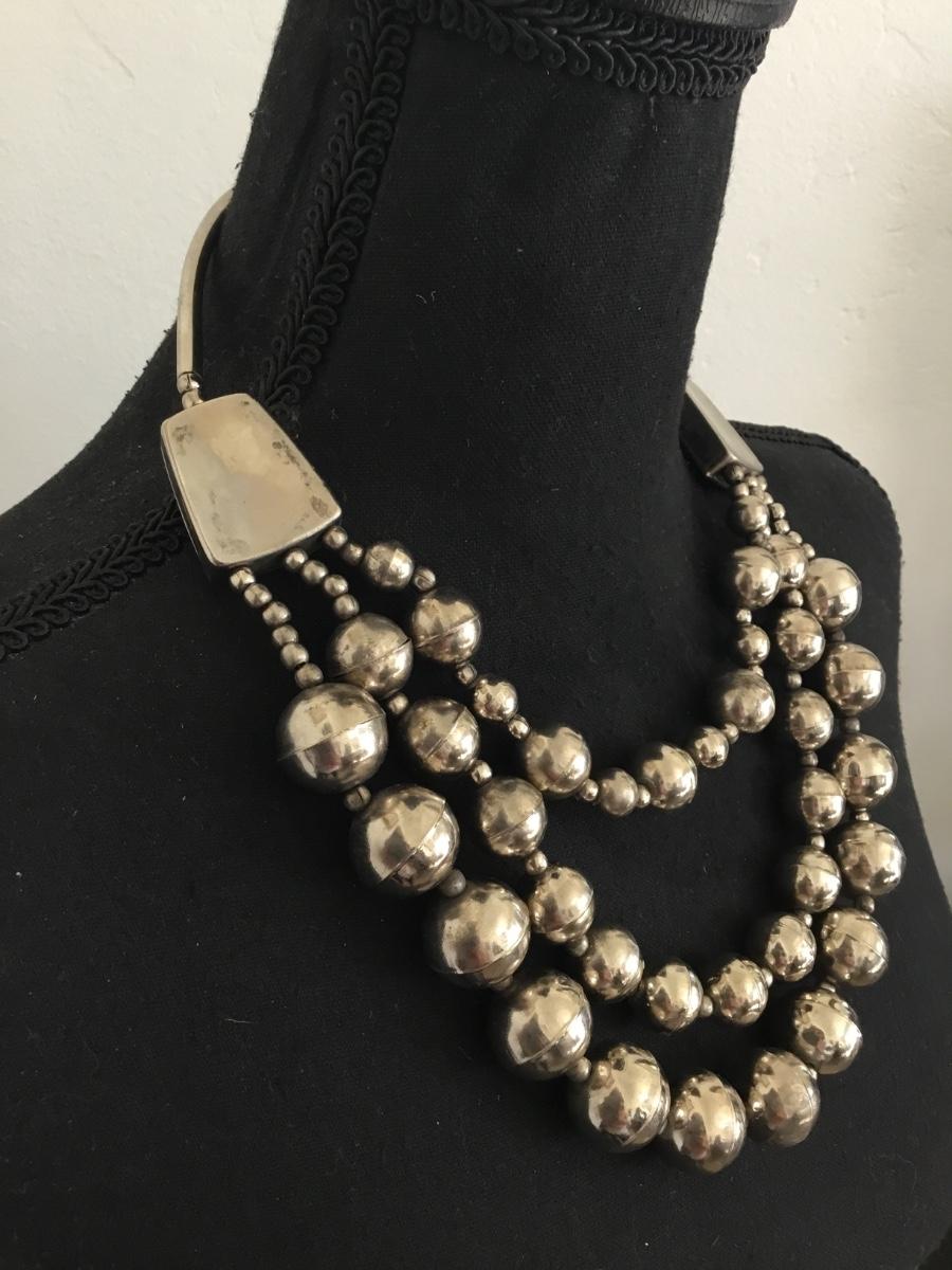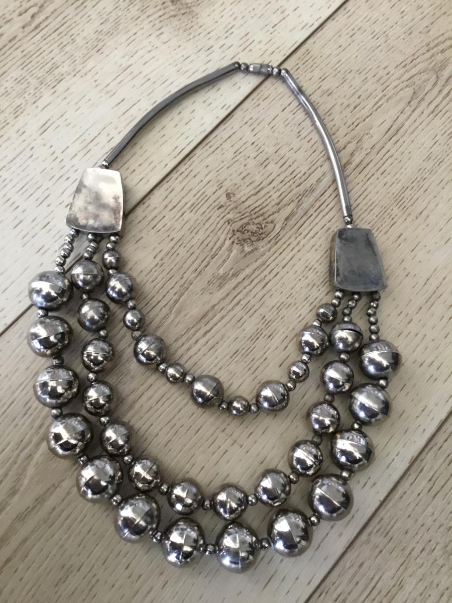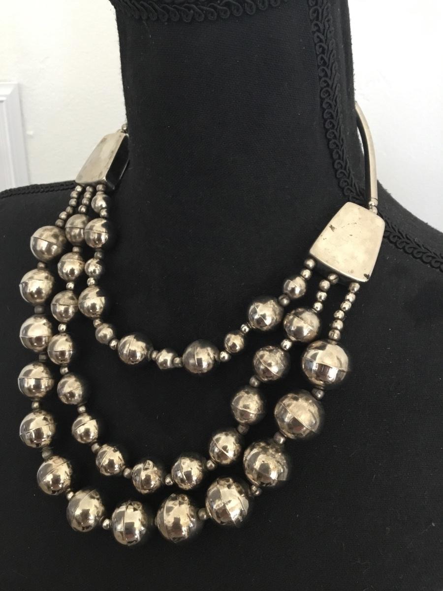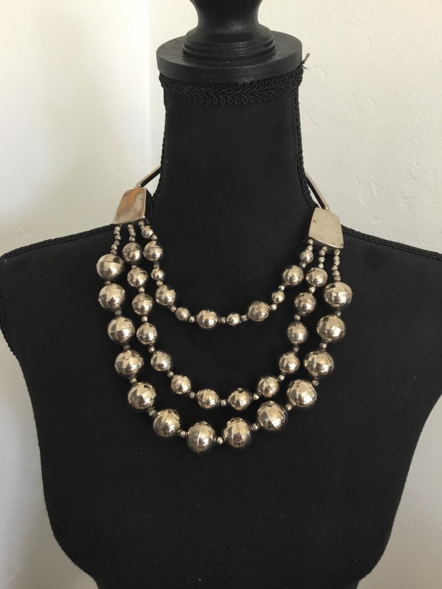 Vintage silver toned statement necklace with barrel clasp