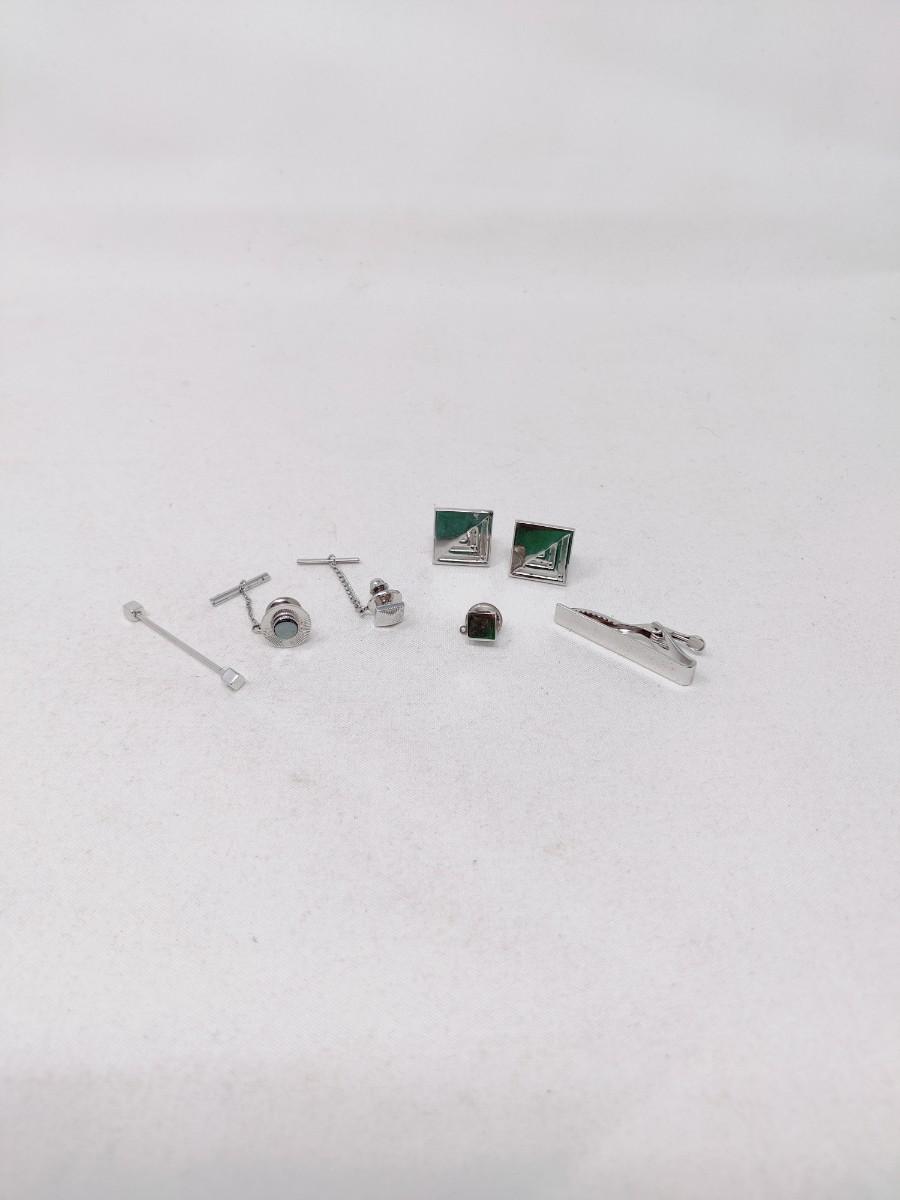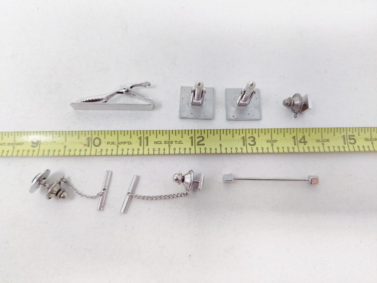 VINTAGE SILVER TONED TIE CLIP AND CUFFLINK LOT