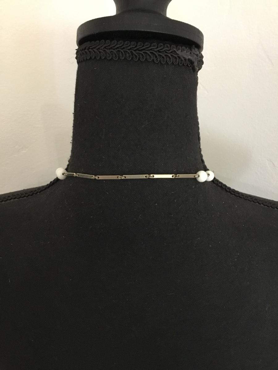 Vintage Silver, toned, white milk, glass, bead statement, necklace