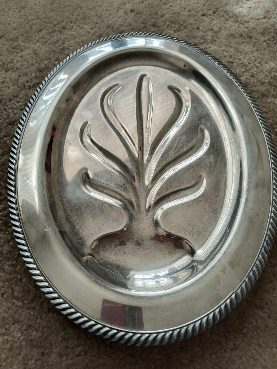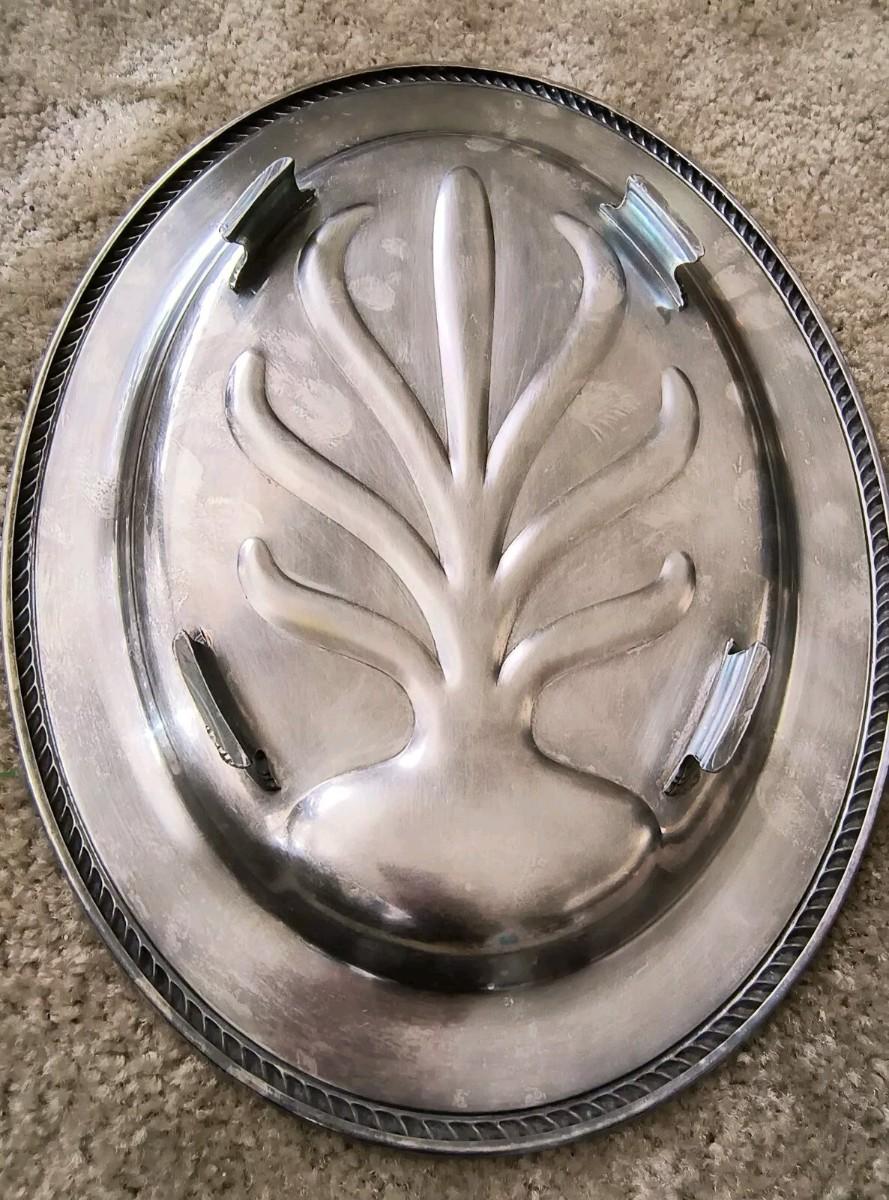 Vintage Wm rogers Windsor Footed meat tray silver plate 16*12