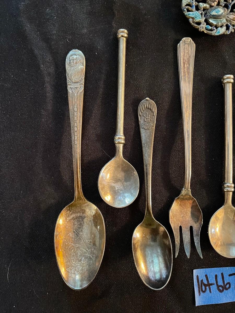 Misc. (10) piece silverplate lot - utensils/pendant.