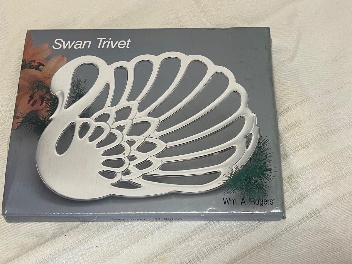 One piece is pewter and swan trivet is NEW IN BOX