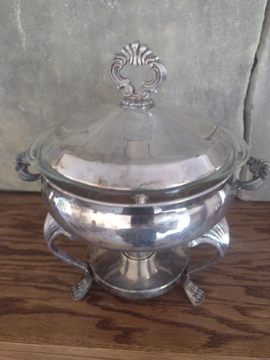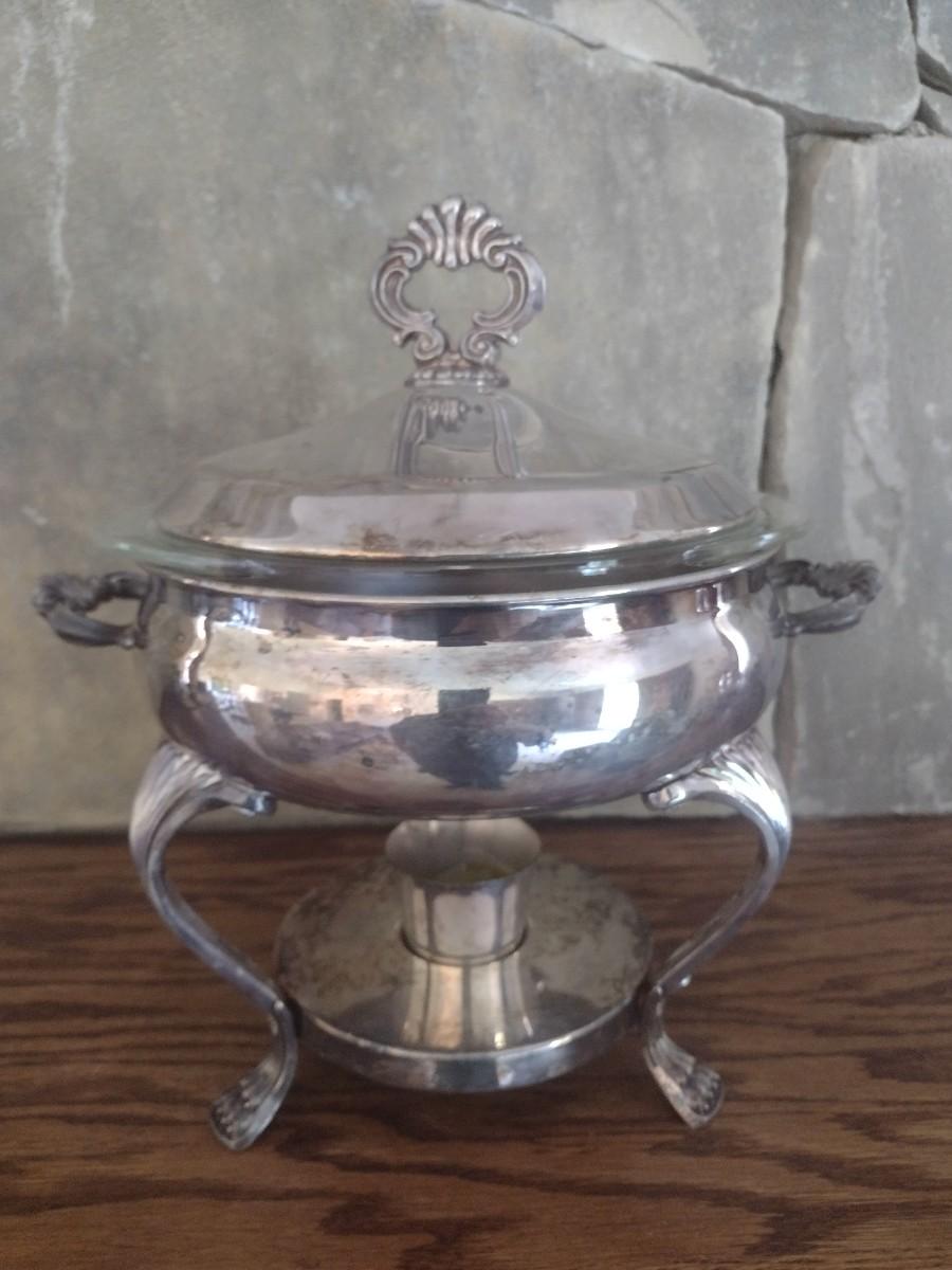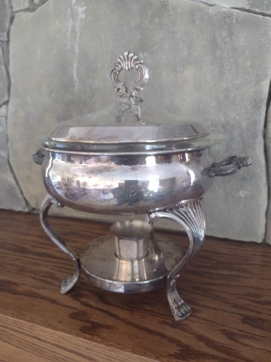 Vintage Silverplate Chaffing Dish with Pyrex Glass Insert