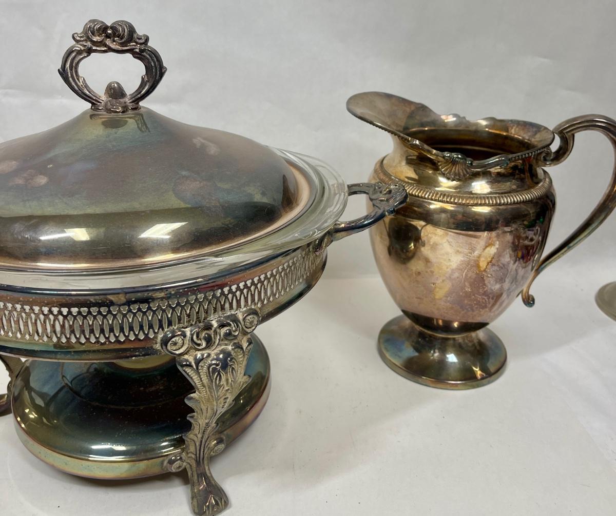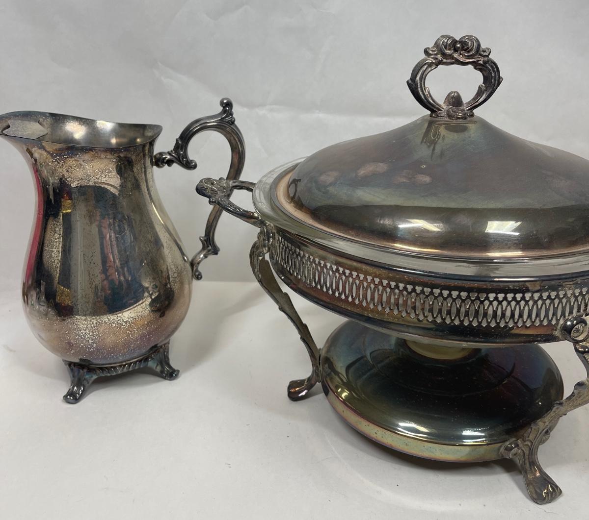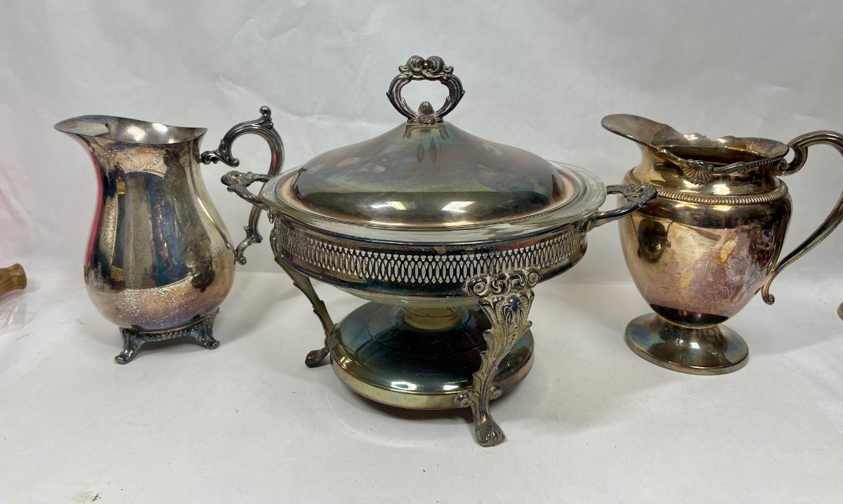 Vintage Silverplate Chafing Dish and Pitchers
