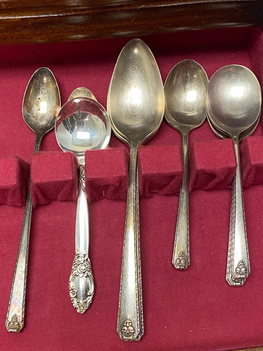 Vintage Silverplate Flatware Set with Extras and Storage Box