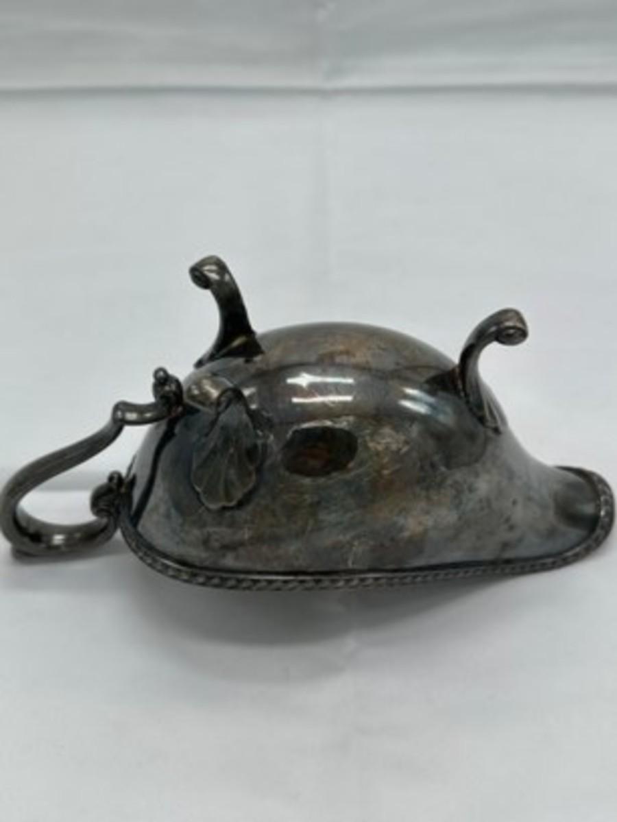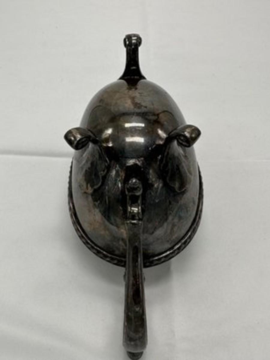Vintage Silverplate Gravy Bowl With Ornate Handle Three Feet