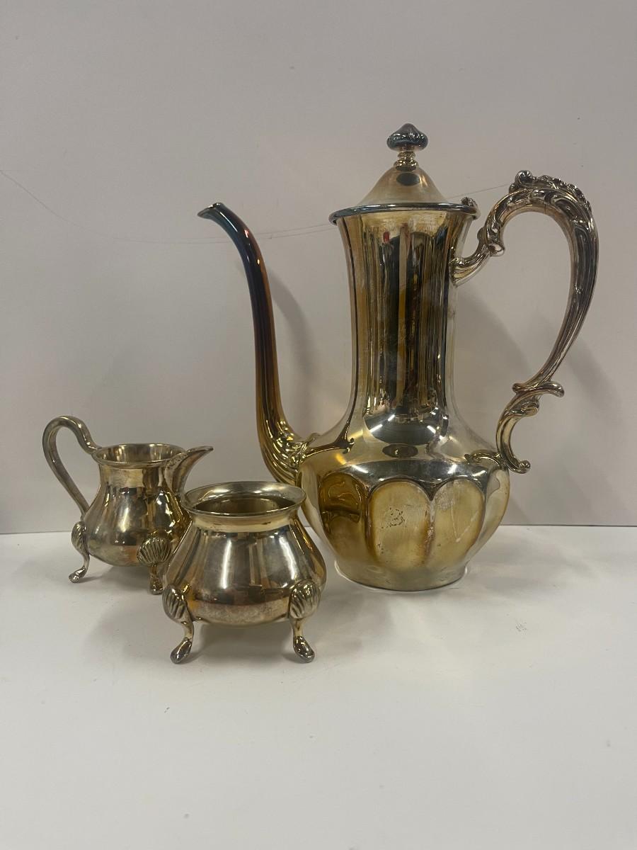 Vintage Silverplate Teapot, Sugar & Open Creamer