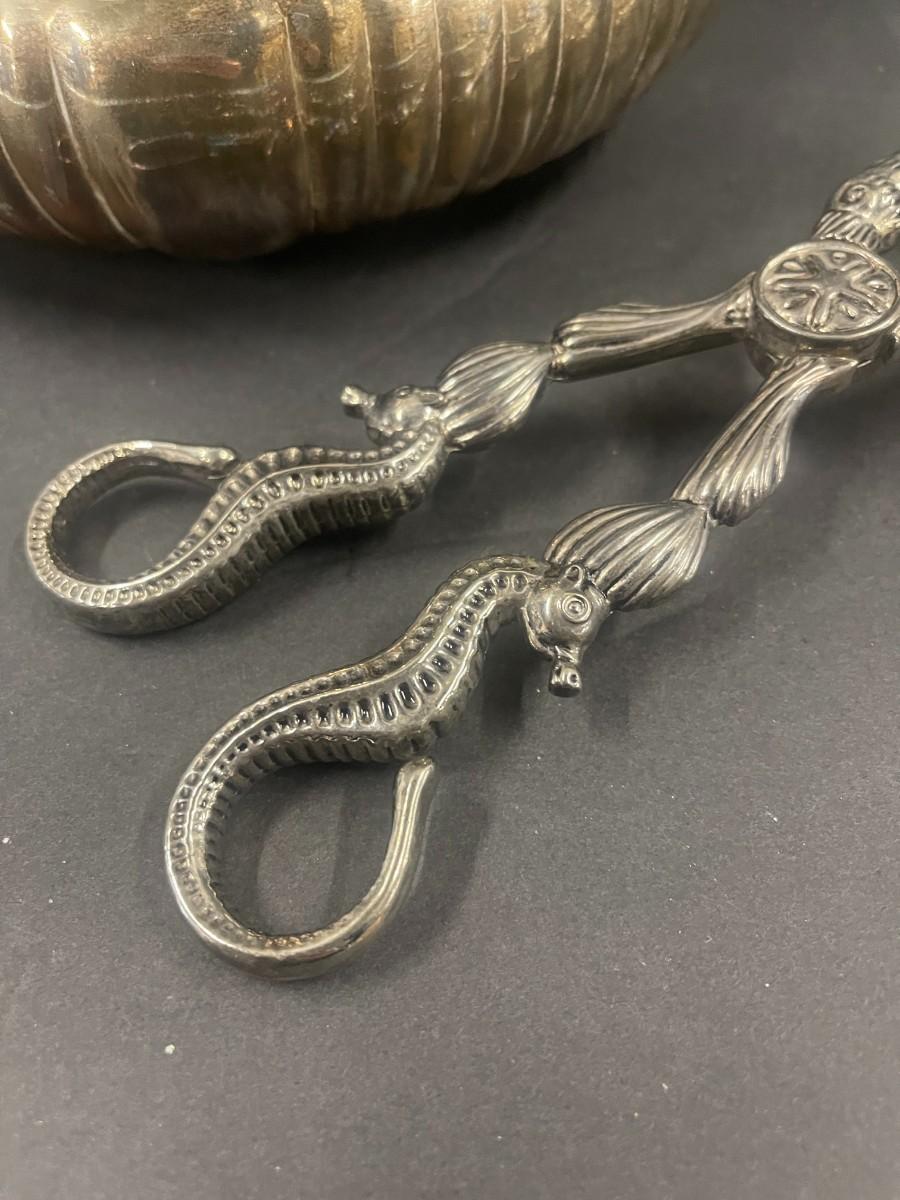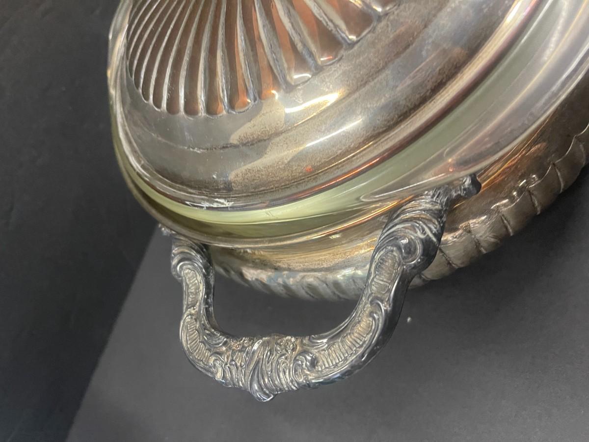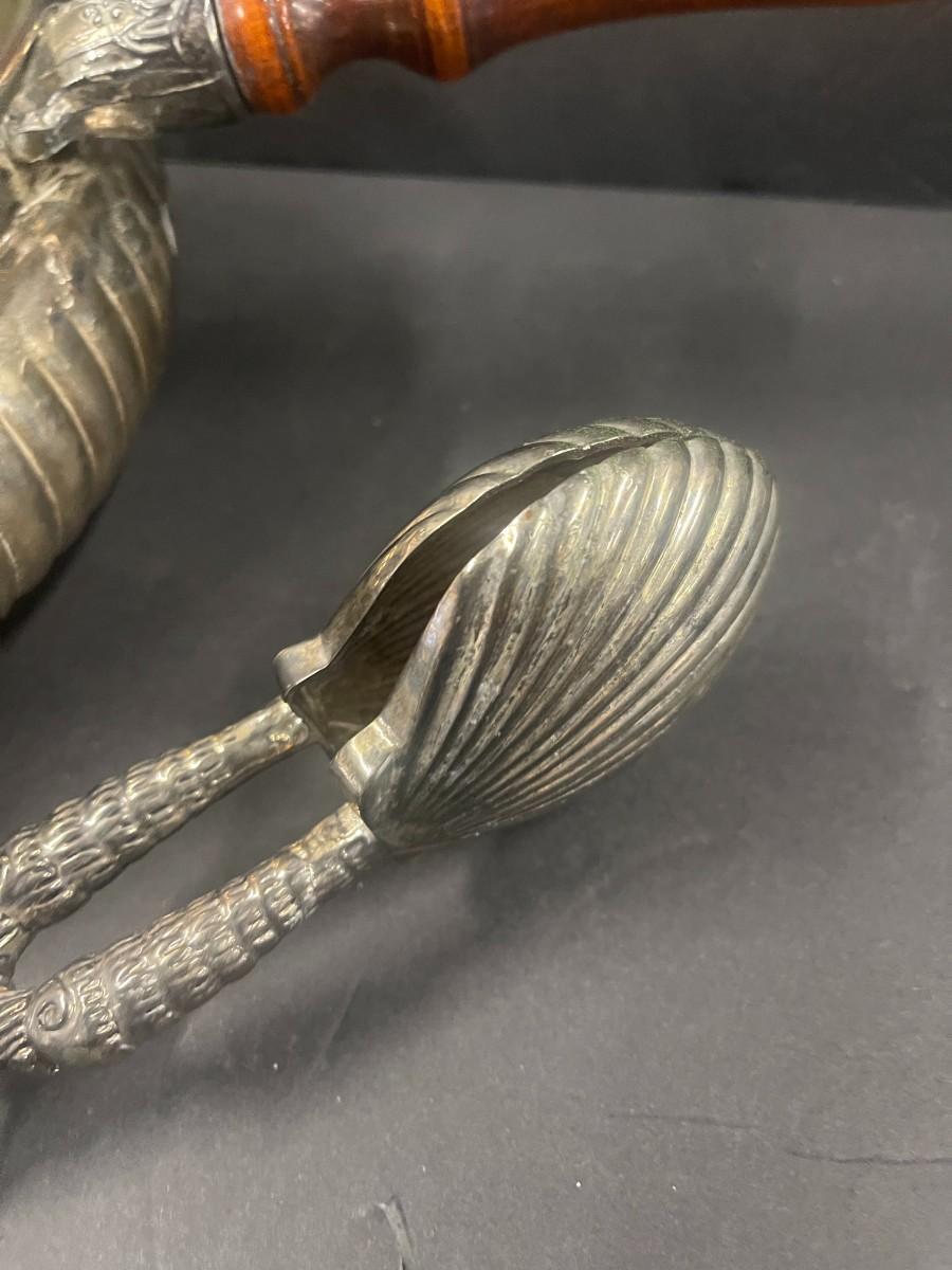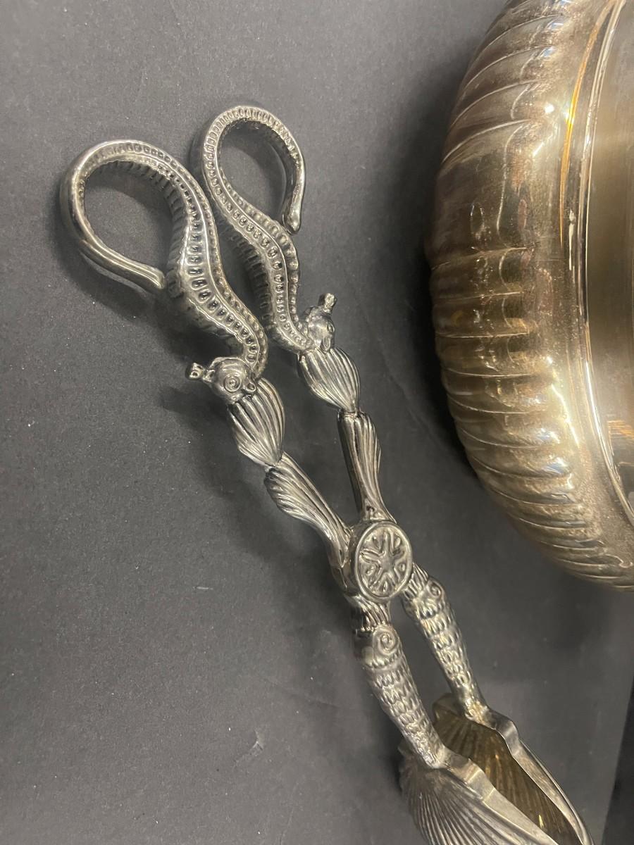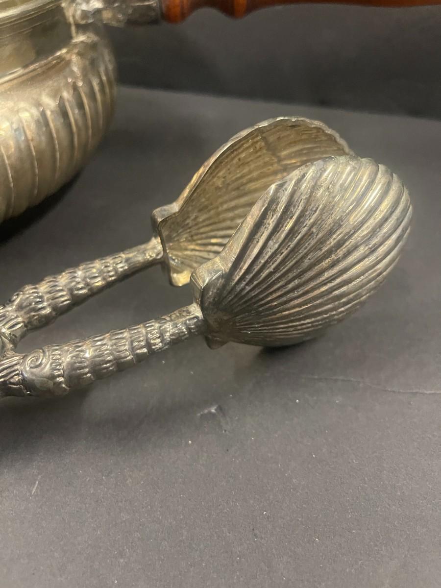 Vintage Silverplate Wood Handle Chafing Dish and Pair of Godinger Silverplate Tongs