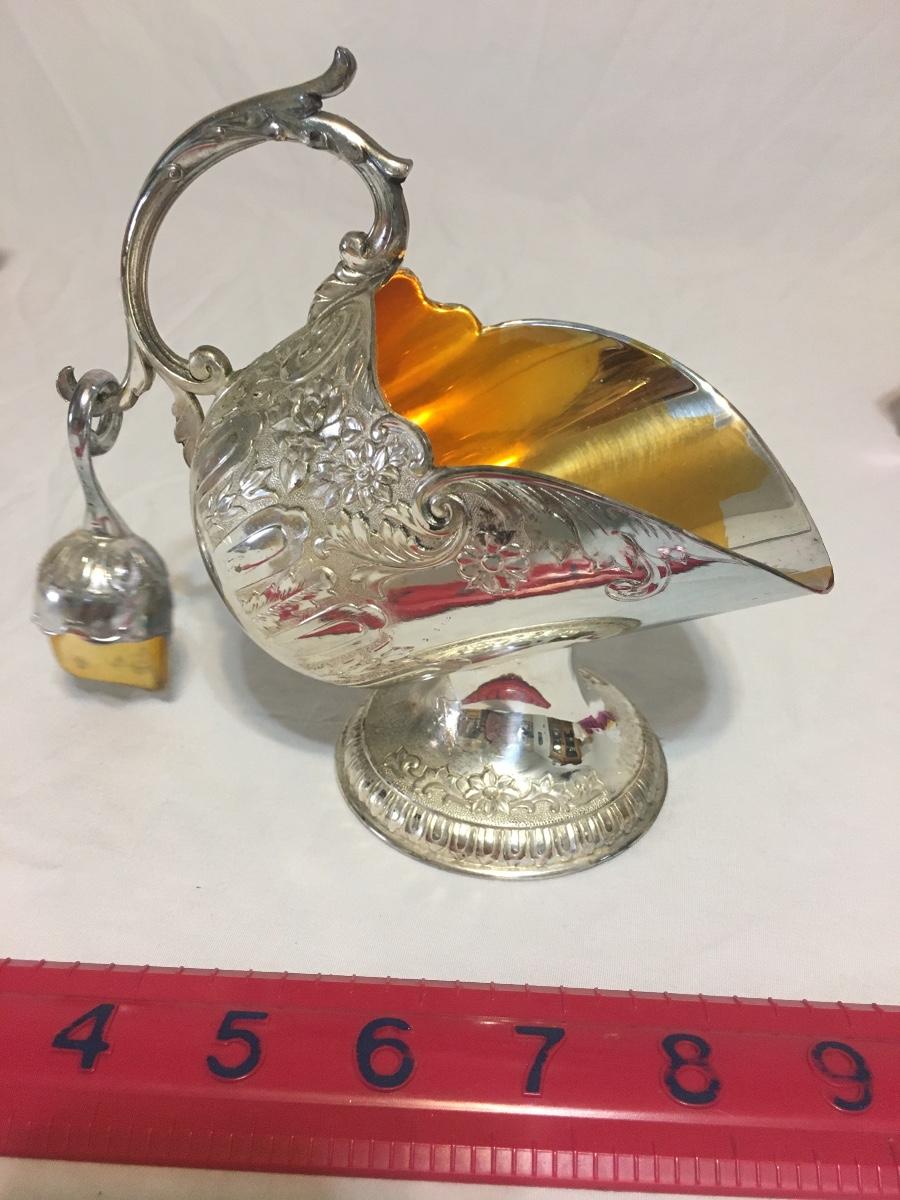 VINTAGE SILVERPLATED SUGAR SCUTTLE BOWL with SCOOP By LEONARD V/G USED CONDITION