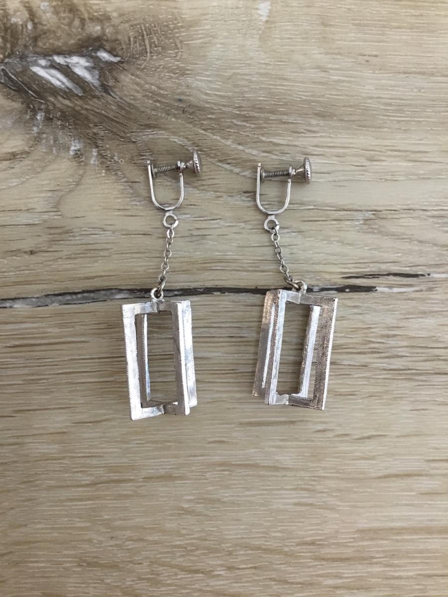 Vintage Silver-tone cage screw back earrings
