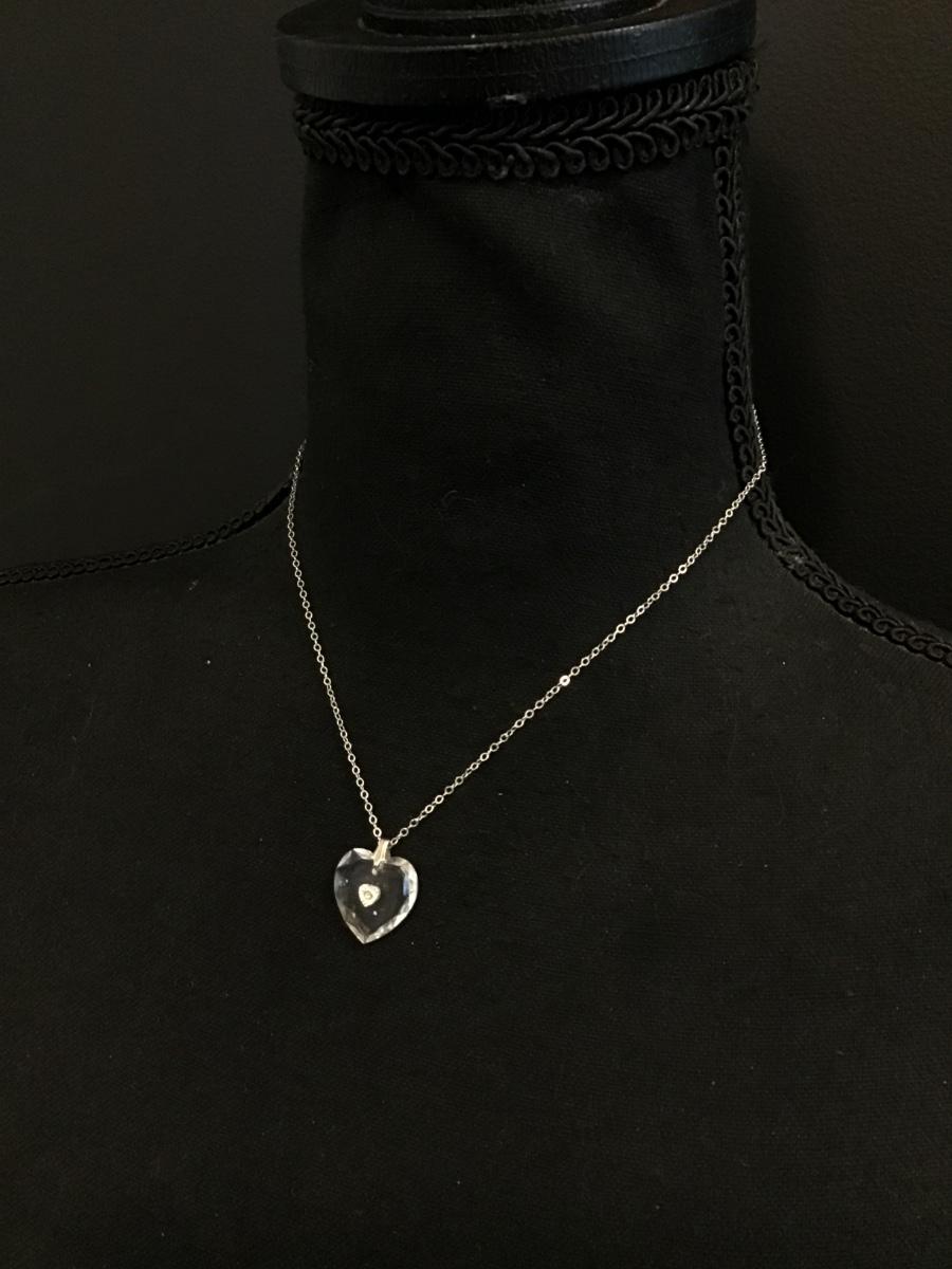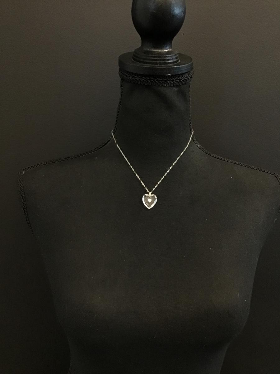 Vintage Silver-tone crystal heart pendant necklace