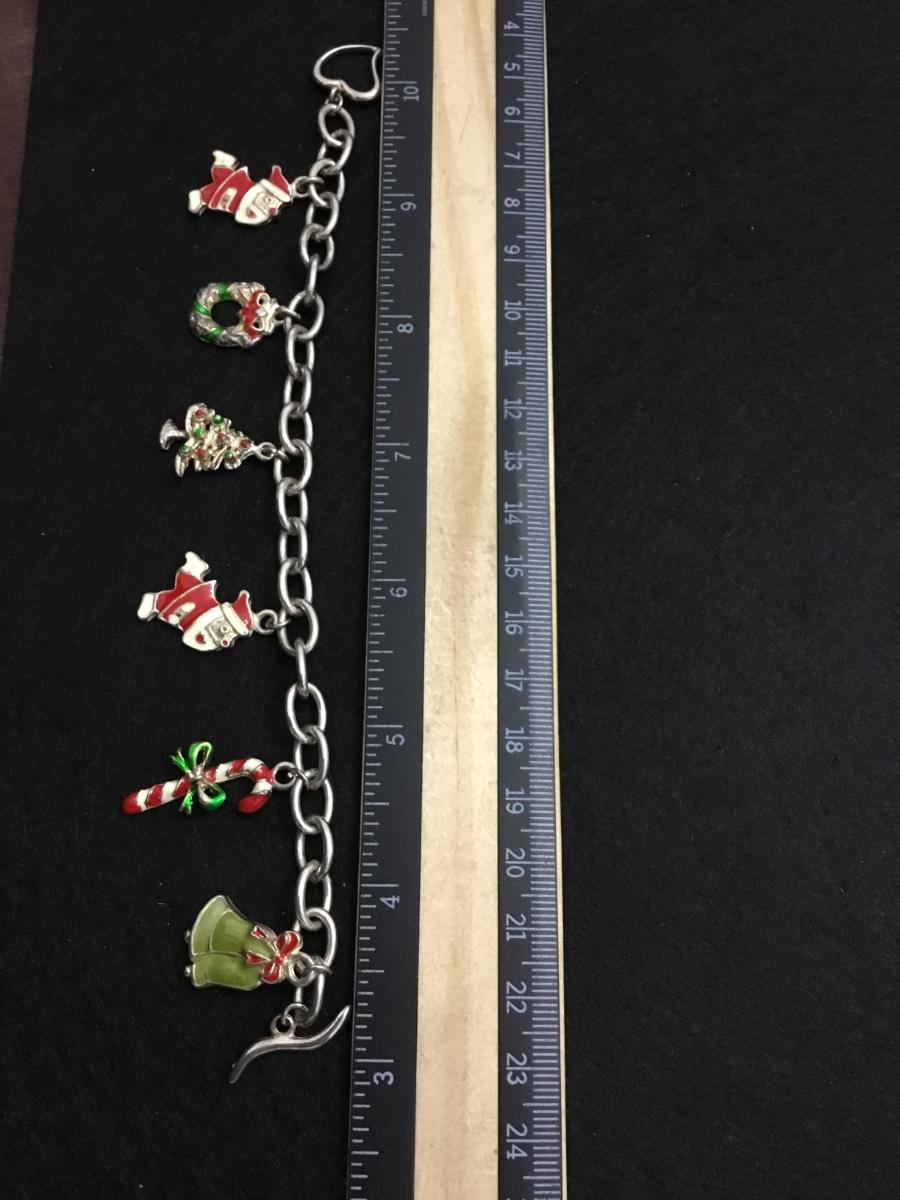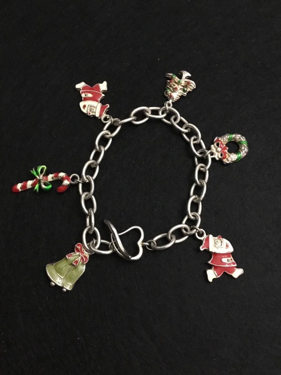 Vintage Silver-tone enamel Christmas charm toggle bracelet