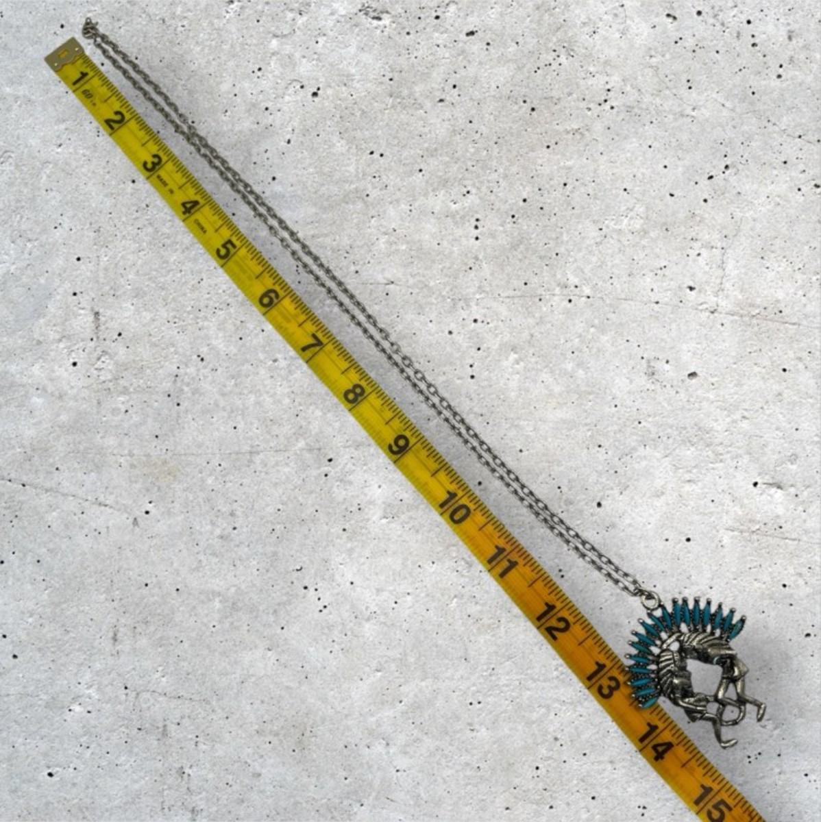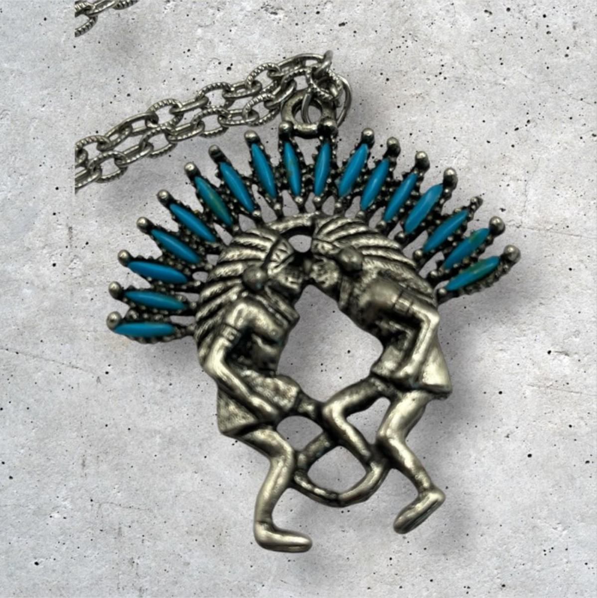 Vintage Silver-Tone Faux Turquoise Indians Dancing Necklace
