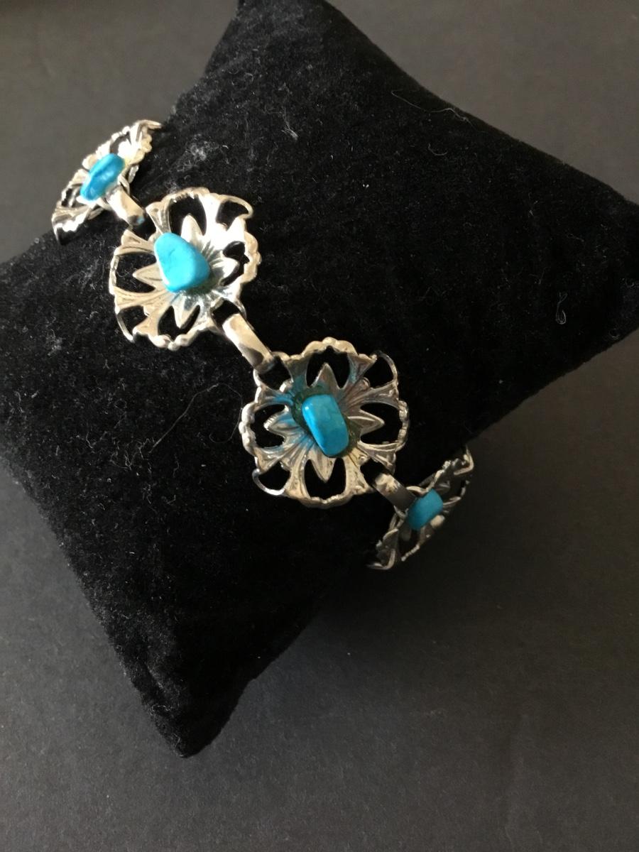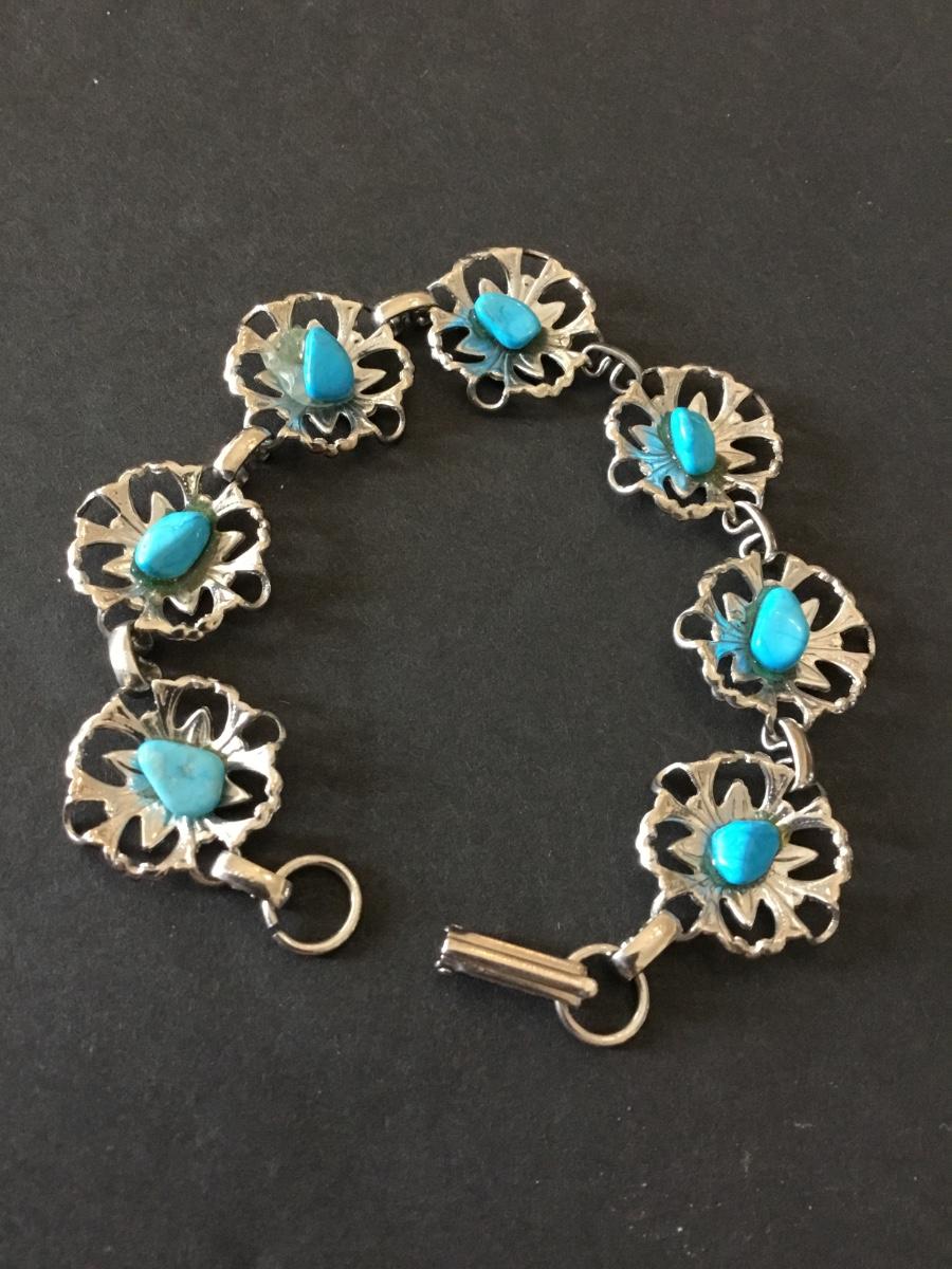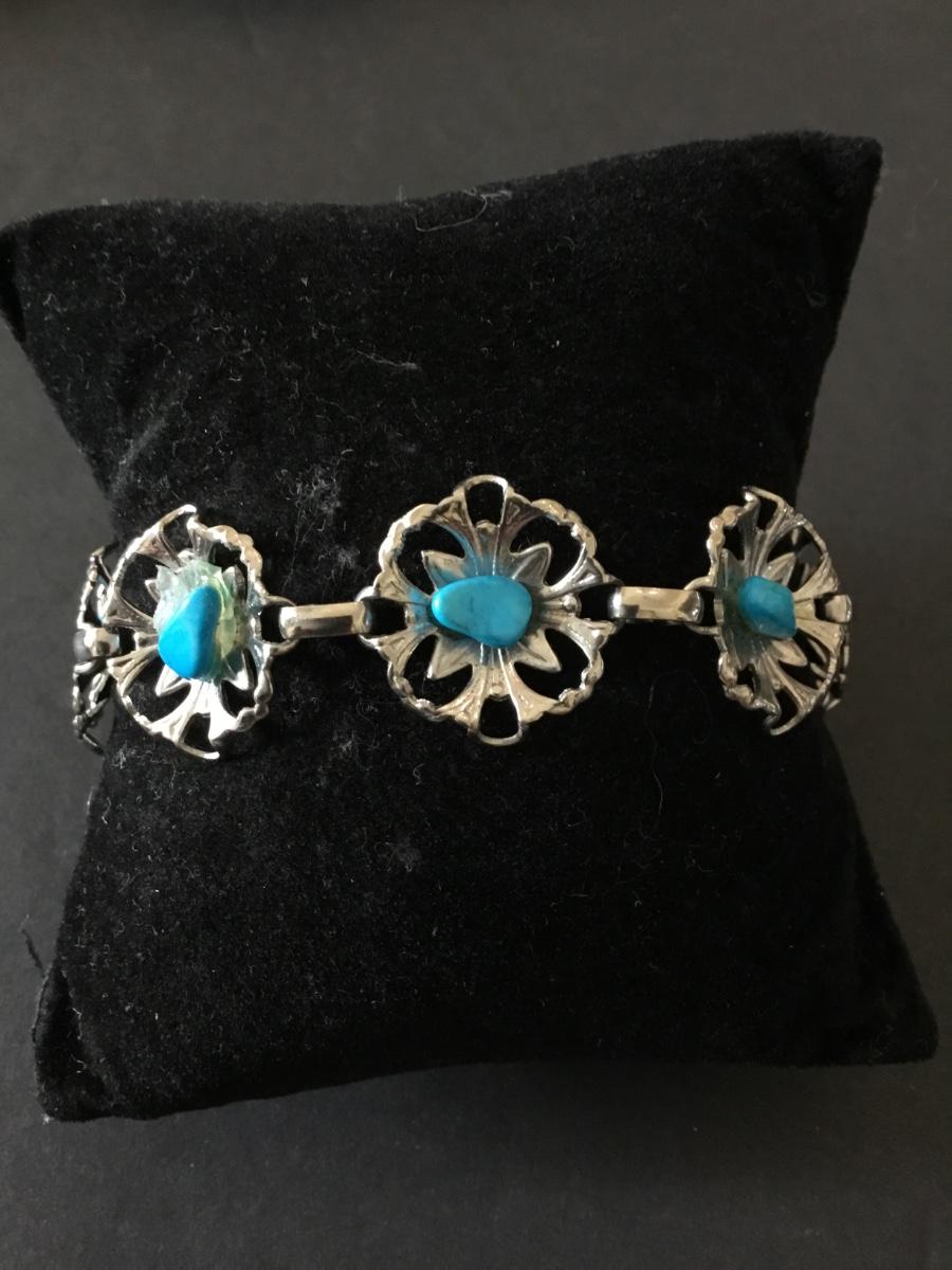 Vintage Silvertone, flower, turquoise, gemstone chips