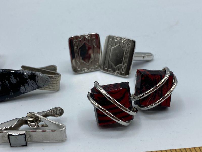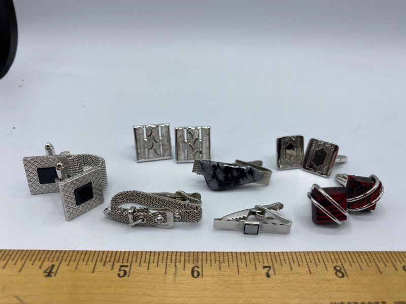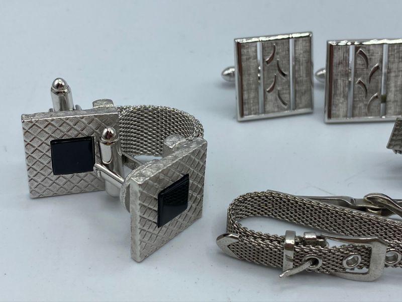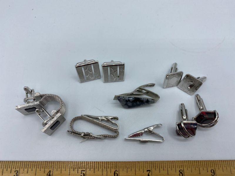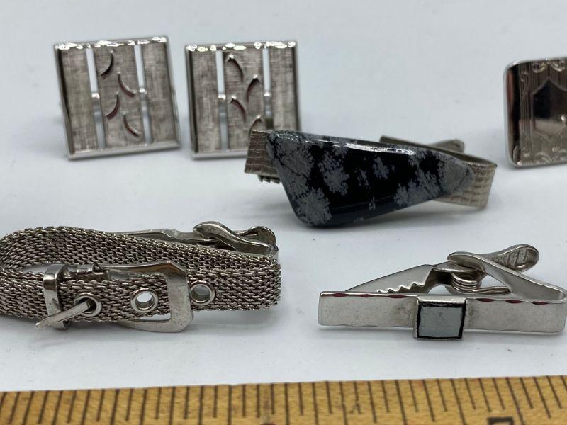 Silvertone vintage men's jewelry lot. Cuff links and tie clips.