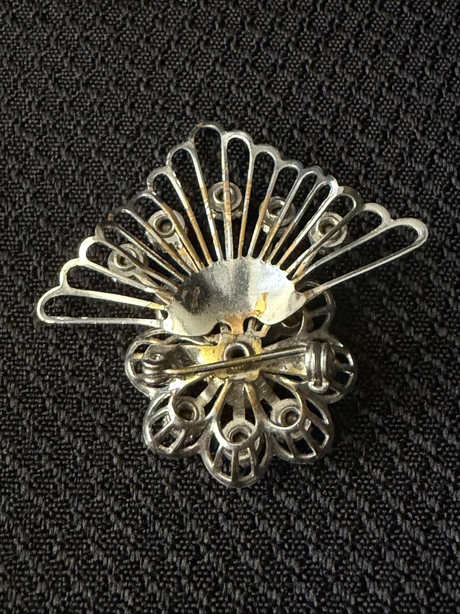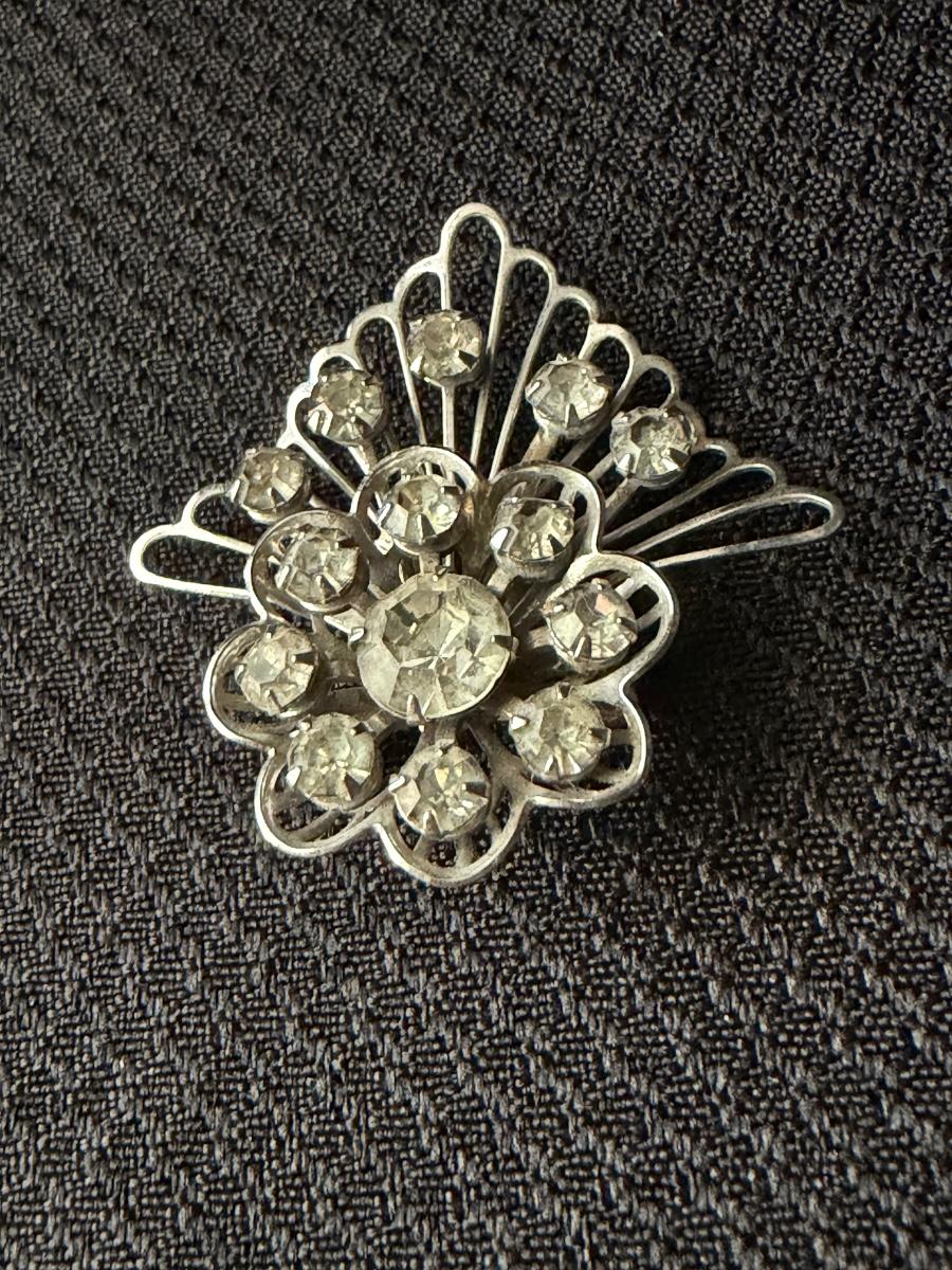 vintage silver-tone rhinestone flower or starburst brooch pin.