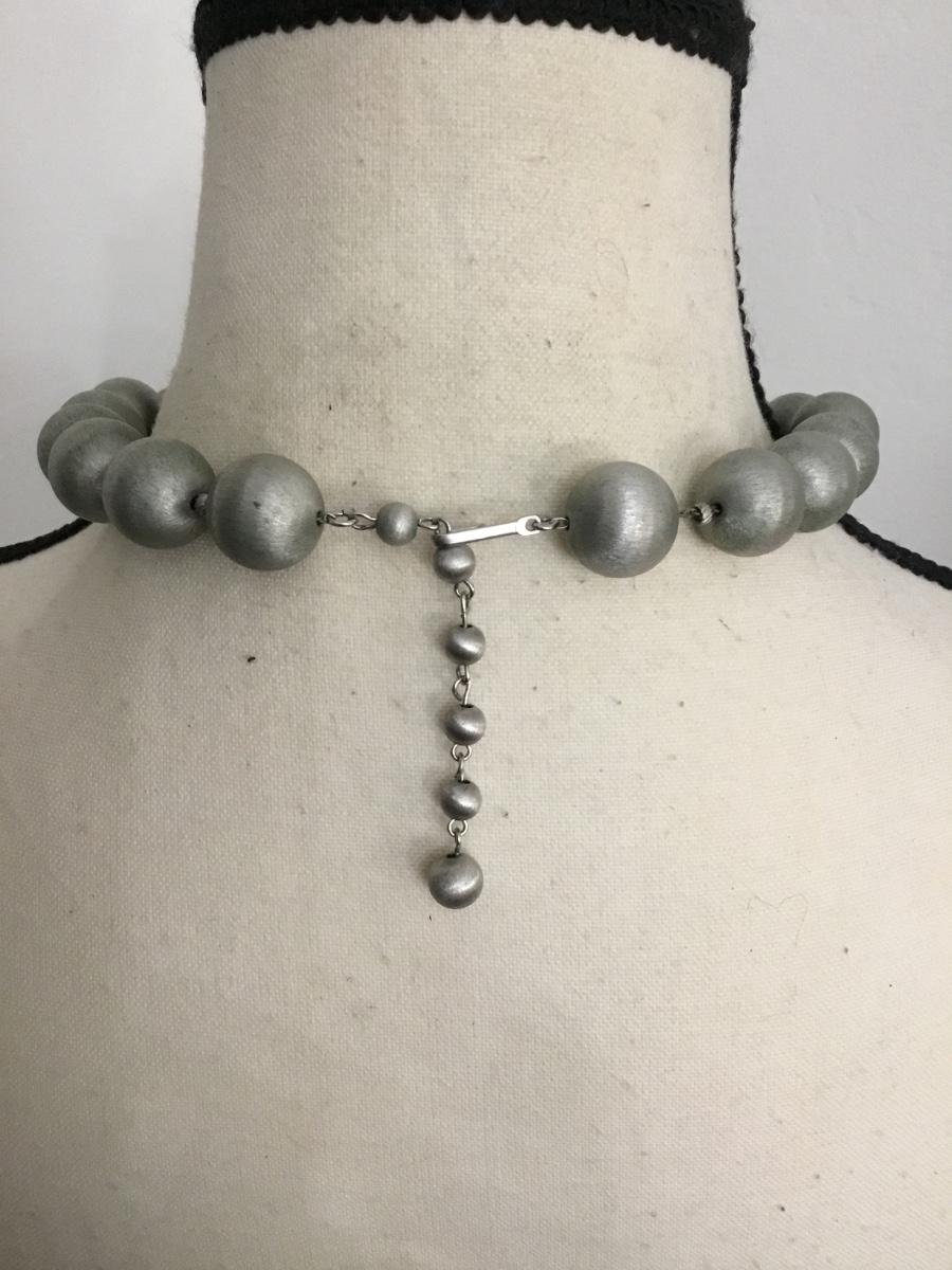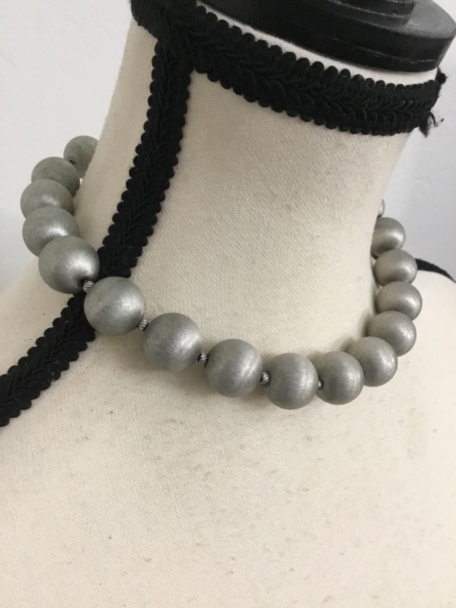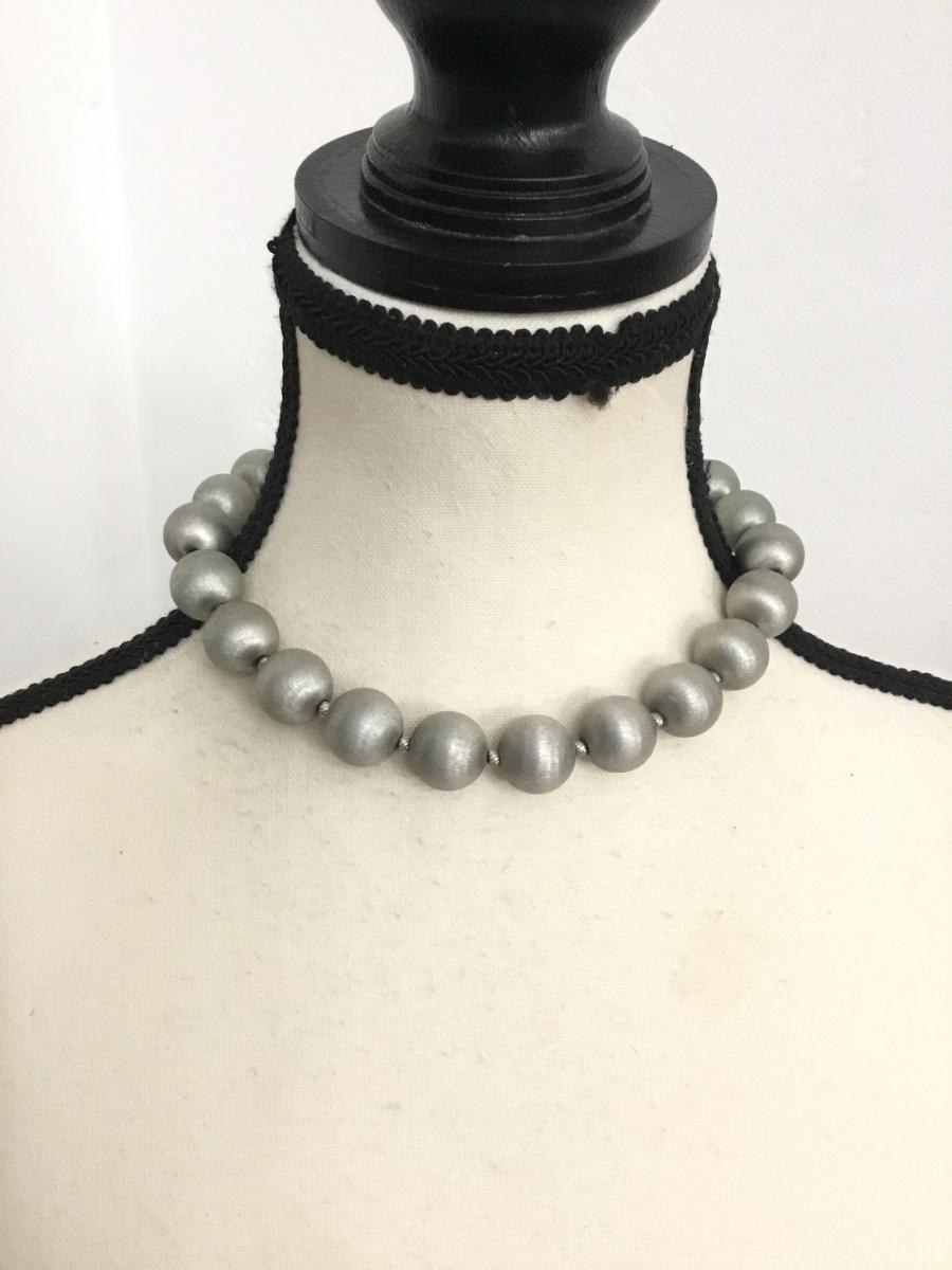 Vintage Silvertone satin metal ball, choker necklace