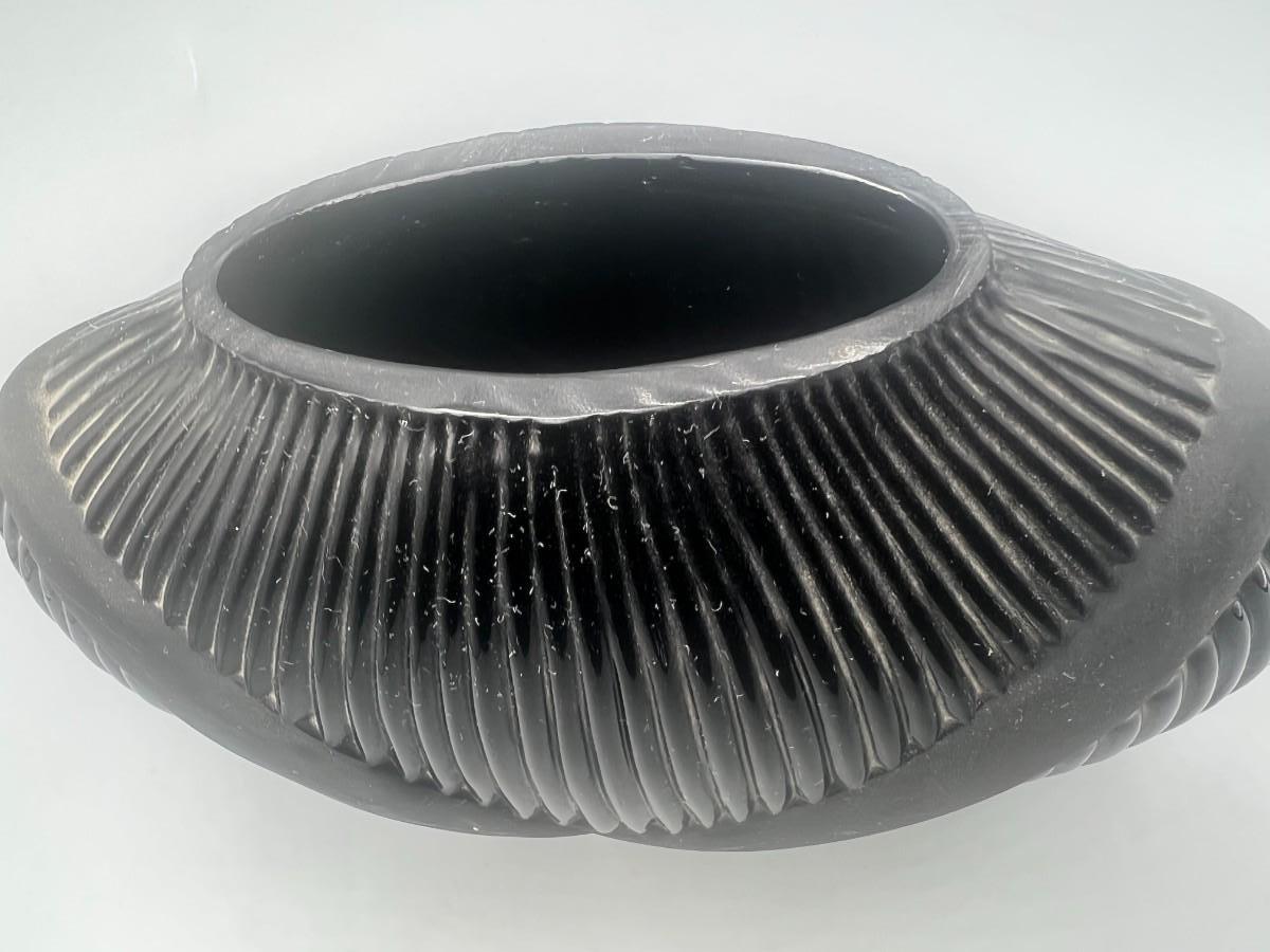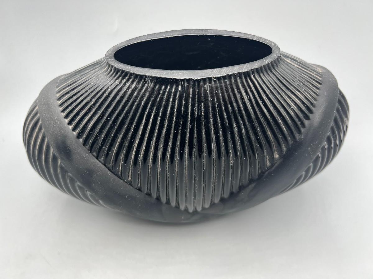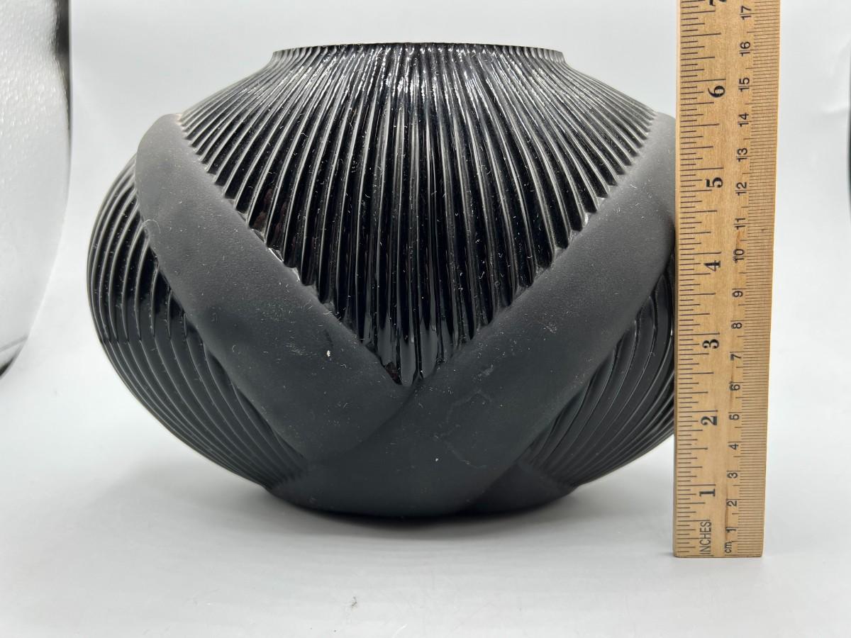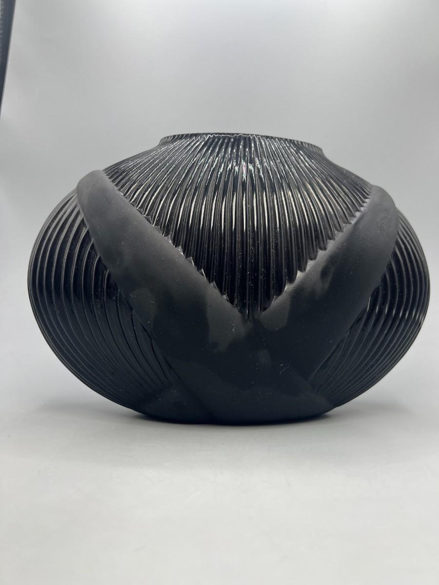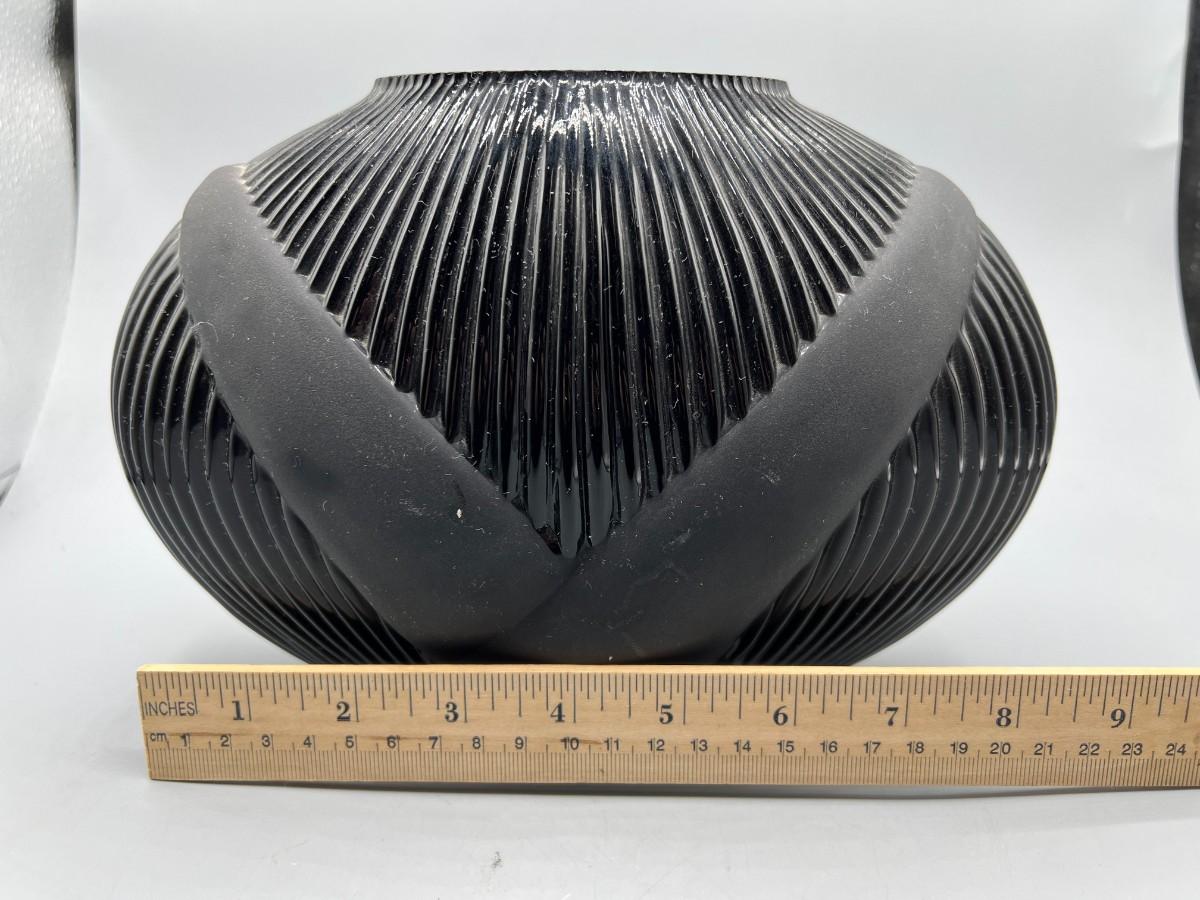 Vintage Silvestri Black Mid Century Modern Oval Pottery Art Flower Vase