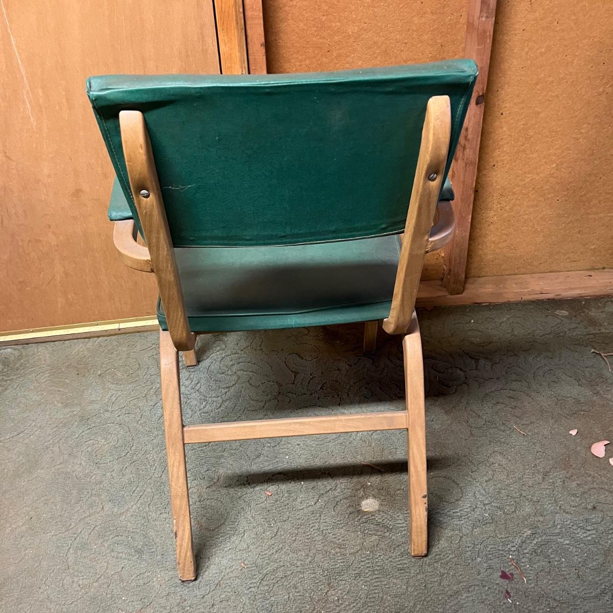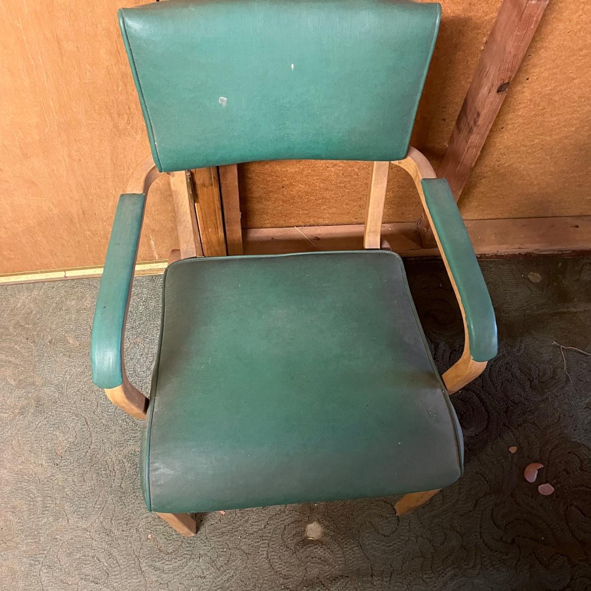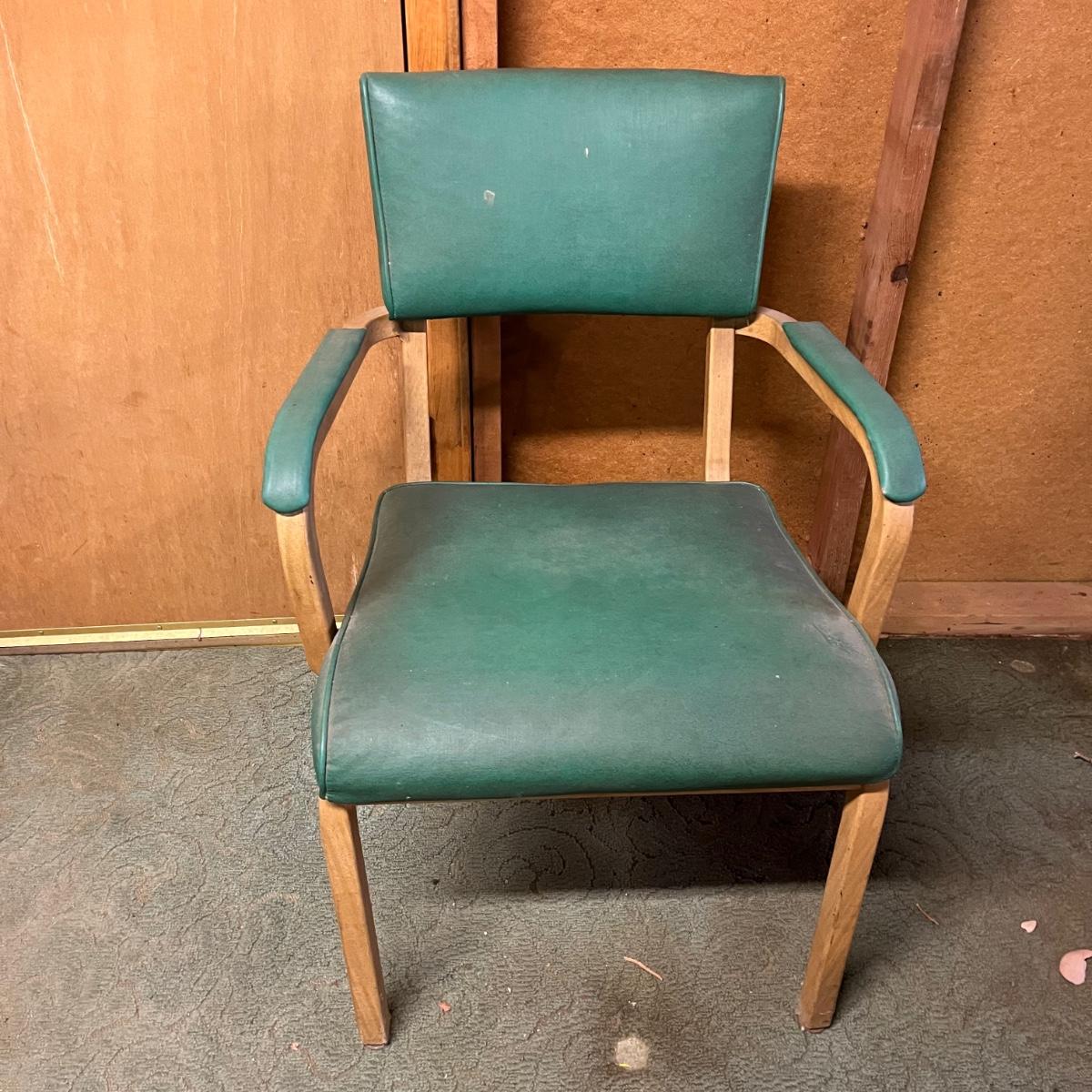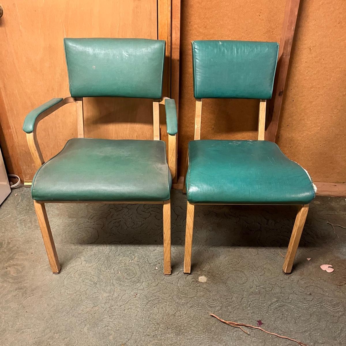 Lot includes one Simmons chair with arms and one Simmons armless chair. Both chairs have padded seat and back with a metal frame. The armless chair has rip at the seam on seat, see pictures. Armchair measures 22” x 24” x 32.5” with a 18” seat height.