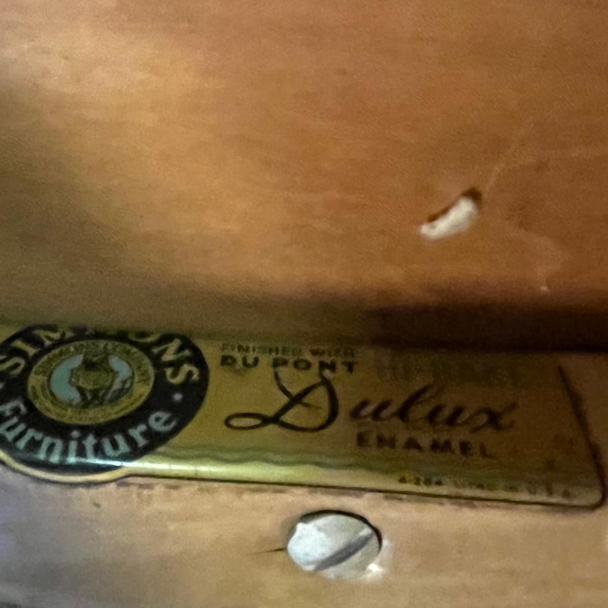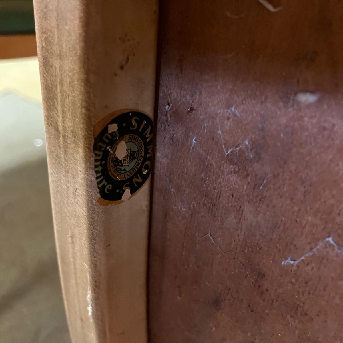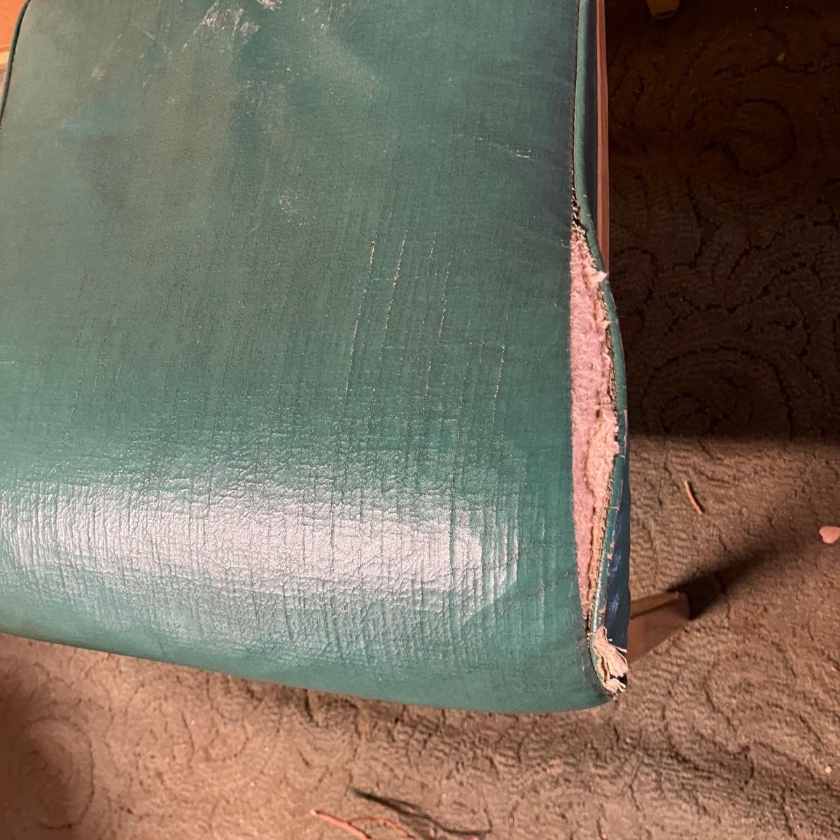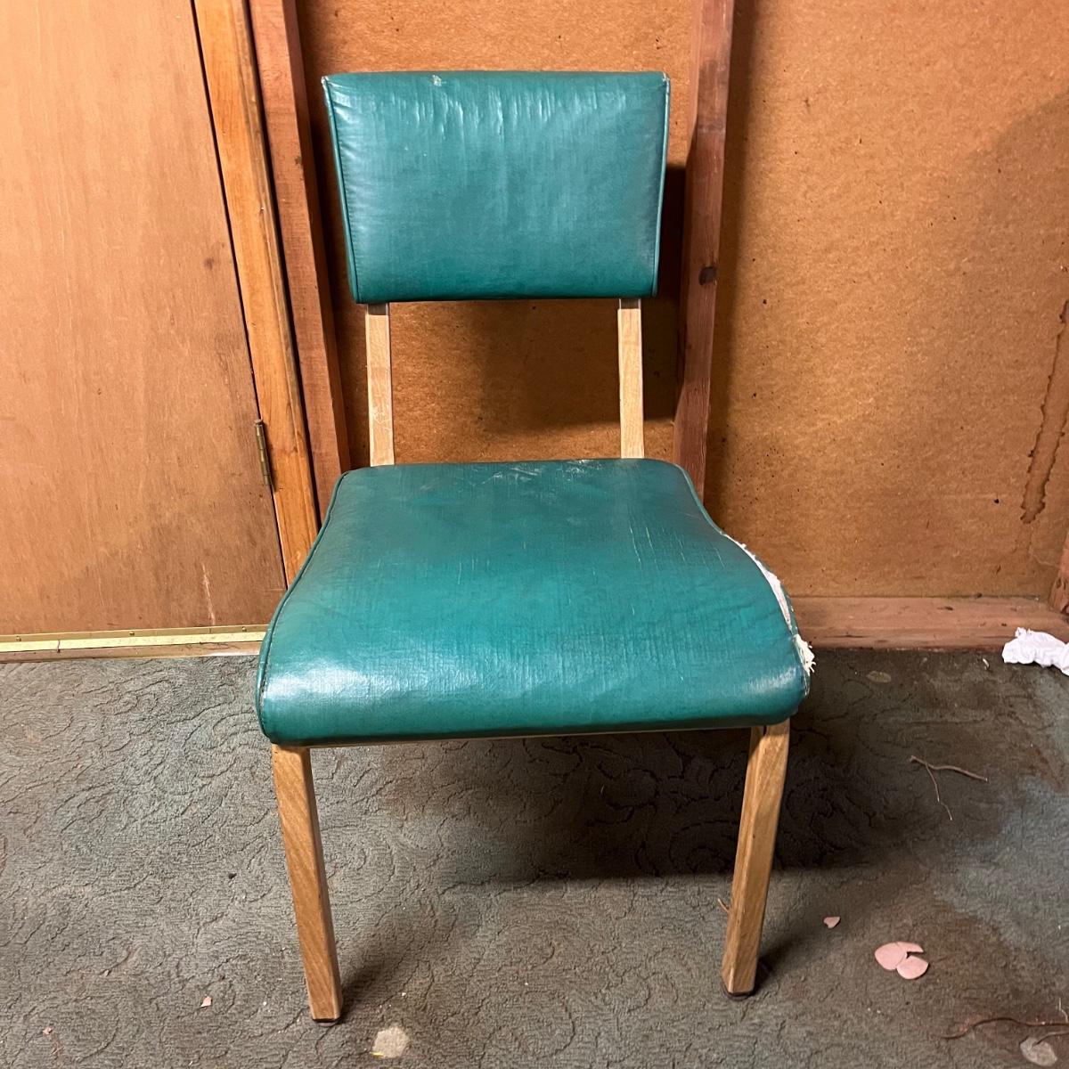 Lot includes one Simmons chair with arms and one Simmons armless chair. Both chairs have padded seat and back with a metal frame. The armless chair has rip at the seam on seat, see pictures. Armchair measures 22” x 24” x 32.5” with a 18” seat height.