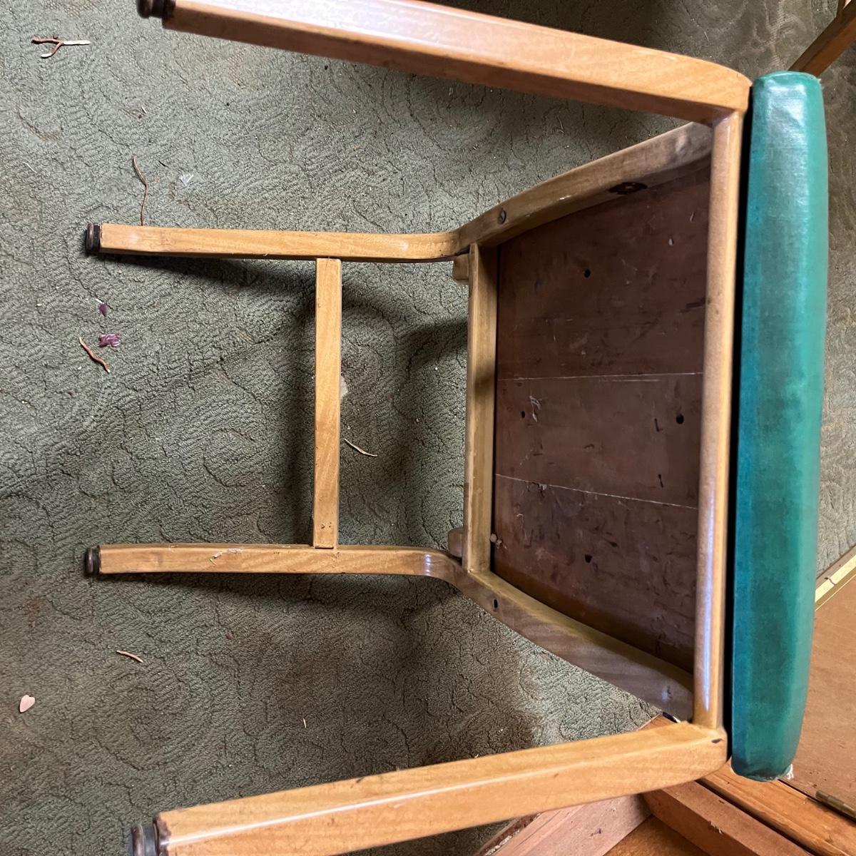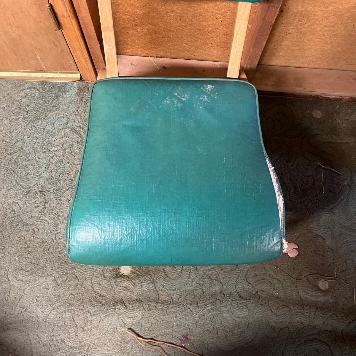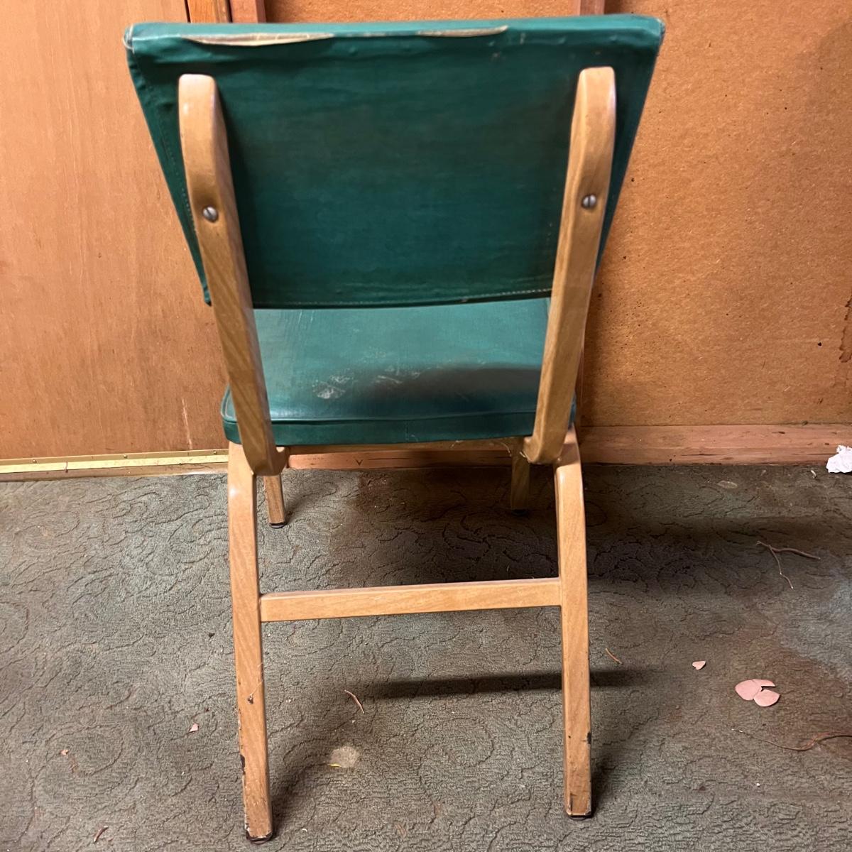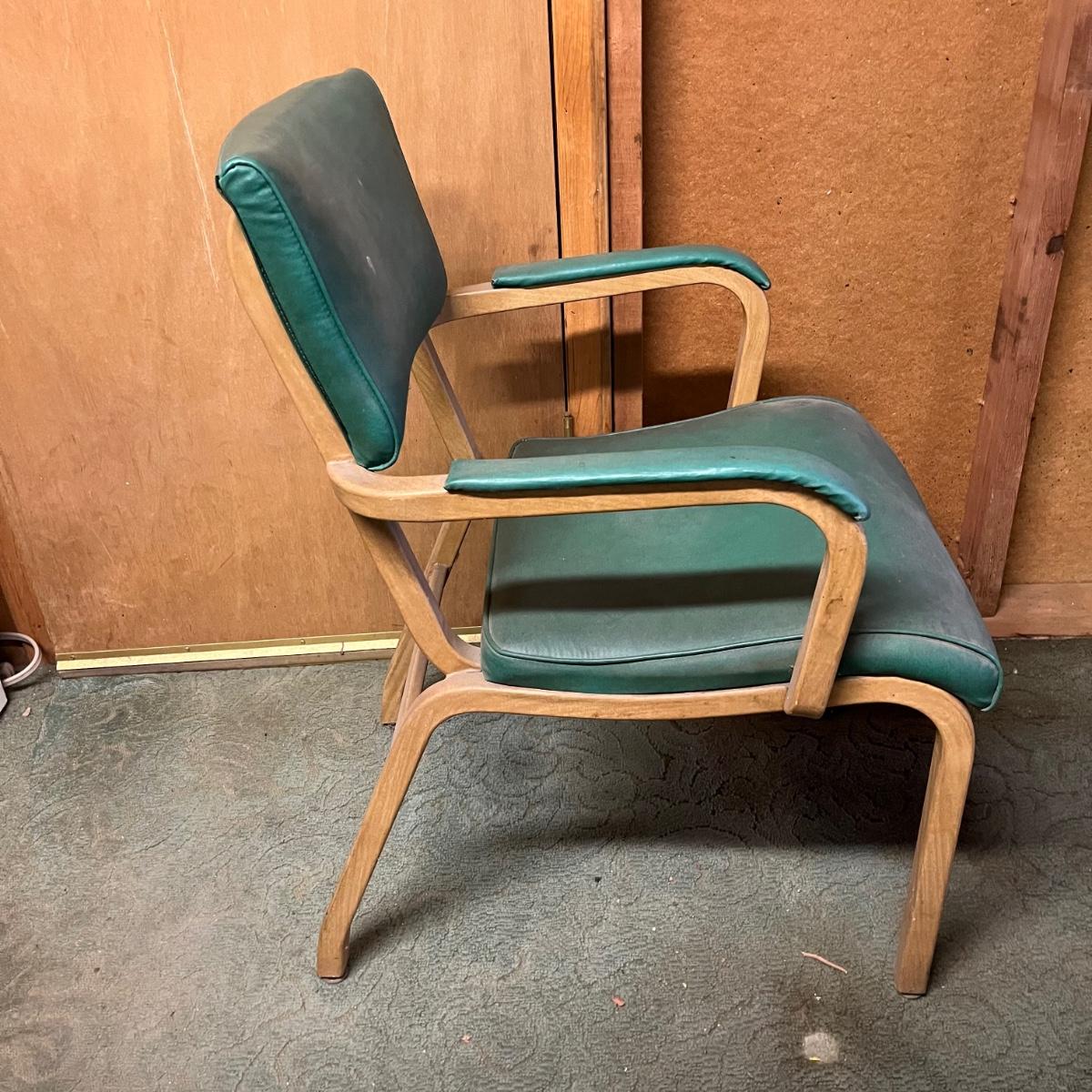 Lot includes one Simmons chair with arms and one Simmons armless chair. Both chairs have padded seat and back with a metal frame. The armless chair has rip at the seam on seat, see pictures. Armchair measures 22” x 24” x 32.5” with a 18” seat height.