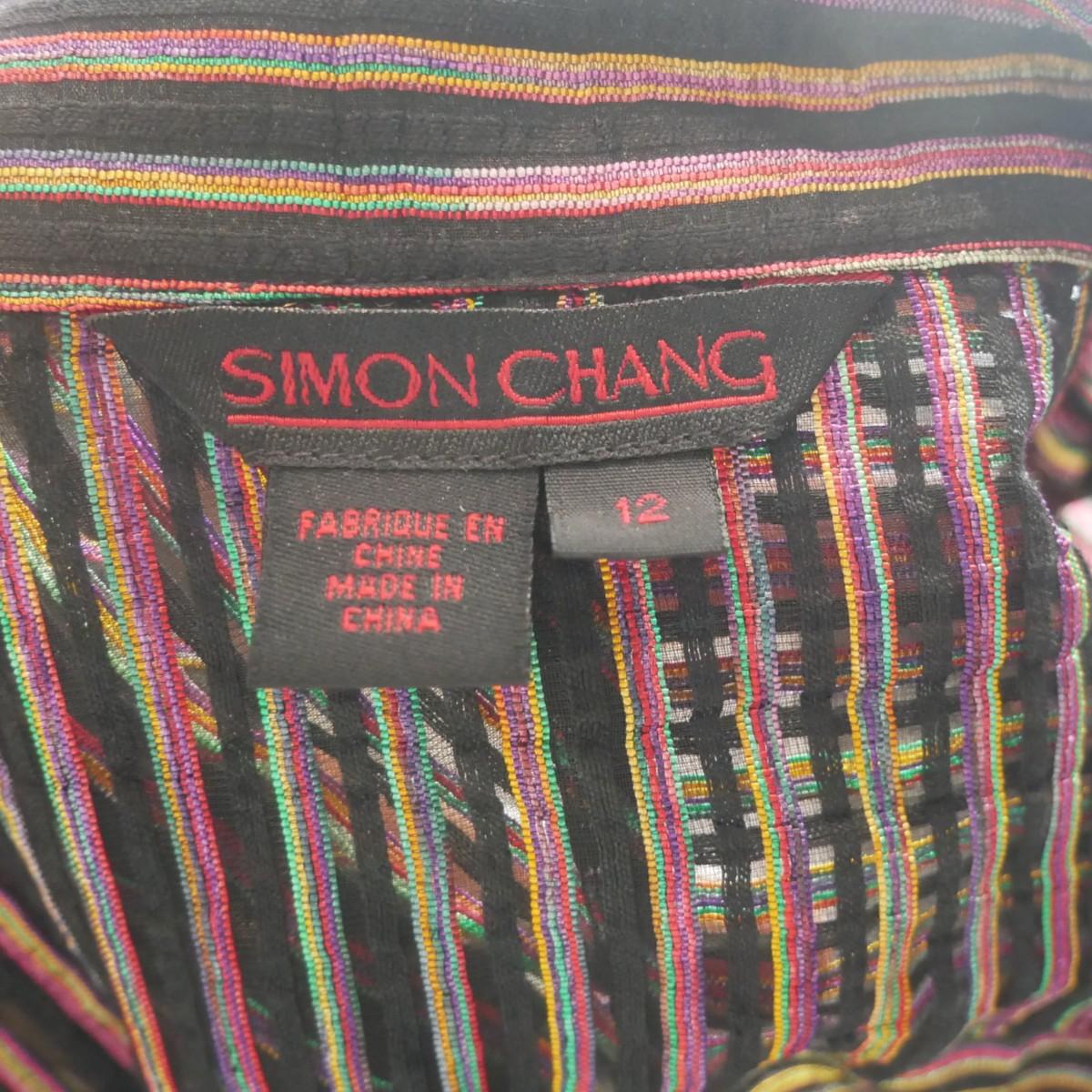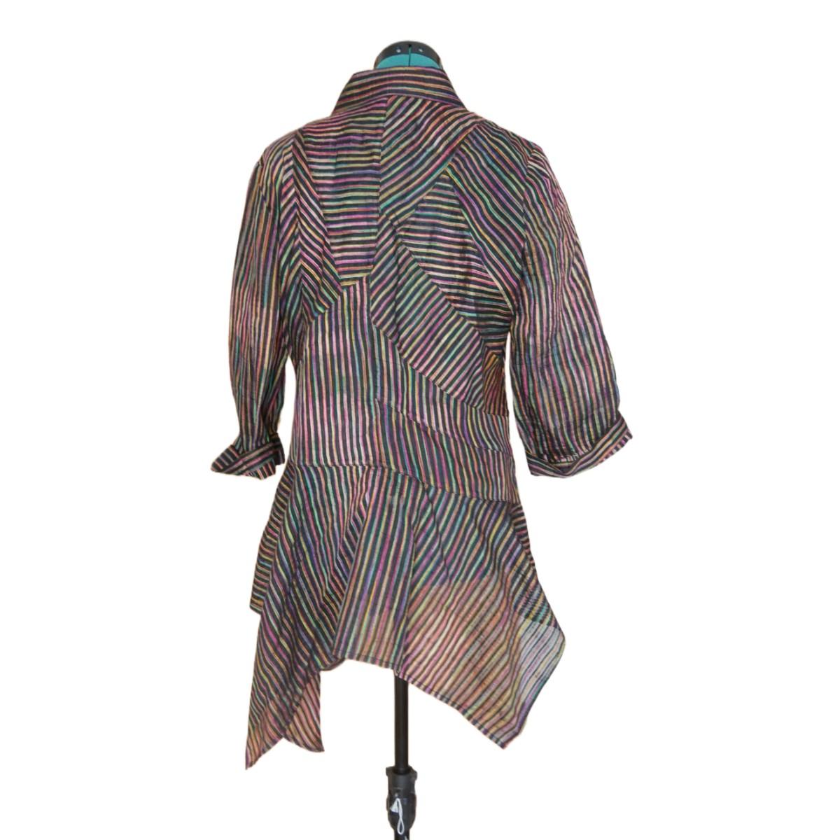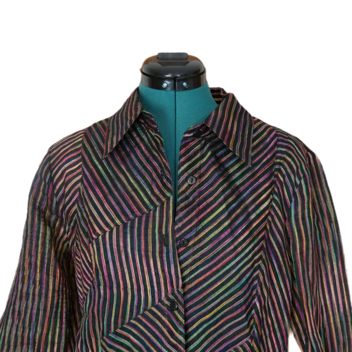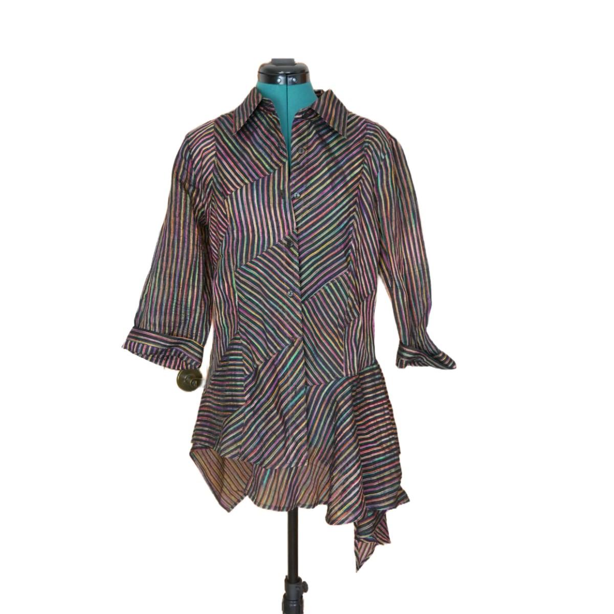 Vintage asymmetrical striped blouse top by Simon Chang. Vintage size 12, fits best a women's size S/M.